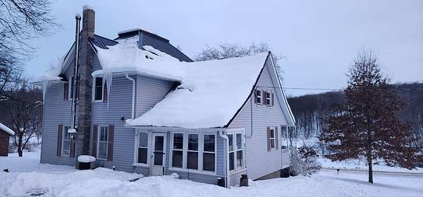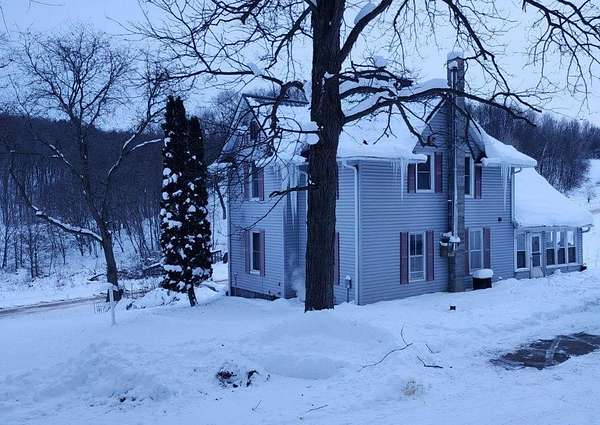 Peaceful country living! This 2-story home sits on 21.75 mostly wooded acres in a scenic valley near a stream. The hilly terrain features rock outcroppings and trails throughout the property. The main floor offers beautiful hardwood oak floors, a pine ceiling, and original oak trim. Upstairs, remodeling has been started with two rooms taken down to the studs and ready for your finishing touch. Wildlife is abundant with frequent deer and turkey sightings among oak, black walnut, fruit trees, and berries. The former 2-stall garage has been converted into a dog kennel with washing shower, multiple stalls, grooming counter, and storage. Updated granary offers potential for a rental cabin or extra separated living spaces.