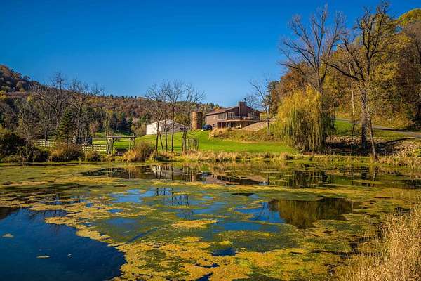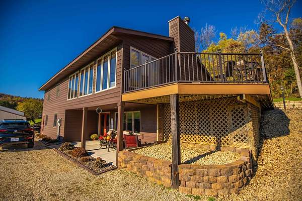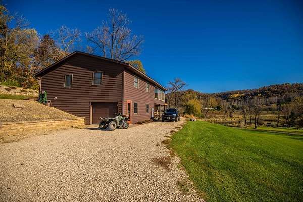 Rarely does a property of this caliber-situated in the heart of the nation's most celebrated trophy buck territory-become available. This property offers incredible land management and residential design, offering a seamless transition from the rugged beauty of the bluffs to the refined comfort of a custom home. The Residence: Designed to Frame the Landscape The 2,800 sq. ft. home serves as an observation deck for the natural world, featuring an open-concept layout that prioritizes natural light and panoramic views. Living Spaces: The interior features gleaming wood floors and dual heating elements-a traditional wood-burning fireplace for authentic warmth and a gas fireplace for convenience. The View: Floor-to-ceiling windows in both the living and dining rooms act as living art, showcasing the rolling bluffs and shimmering ponds below. Bed & Bath: Three spacious bedrooms provide ample room for family or guests, supported by 2.5 well-appointed bathrooms. Modern Comforts: Experience year-round climate control with central air and a premium hot water heating system. Outdoor Entertaining: A massive, maintenance-free wraparound deck provides the ultimate venue for summer hosting or a quiet vantage point for morning coffee. The Land: A Sportsman's Private Sanctuary Buffalo County is legendary for its whitetail genetics, and this 82.79-acre tract is a microcosm of everything that makes the region famous. Mixed Topography: The acreage is a strategic blend of high-climbing hardwoods, hidden meadows, and lowland edges, creating the "edge effect" that keeps wildlife on the property. Water Wealth: Three spring-fed fishing ponds serve as the property's centerpiece, complemented by a historic spring house that adds a touch of rustic charm. These ponds have grown exceptional trout, panfish and bass in the past and offer private fishing sanctuaries for you and your family to enjoy. Turn-Key Hunting: Three permanent, professionally positioned deer blinds are located along a well-maintained trail system, allowing for low-impact entry and exit. Wildlife Record: This land has a proven track record of producing trophy-class bucks, alongside thriving populations of wild turkey and small game. Infrastructure & Outbuildings The property is fully equipped to handle equipment storage, hobbies, or light agricultural pursuits. Main Shop: A 32' x 72' pole shed offers massive storage for tractors, UTVs, and boats, with plenty of room for a workshop. Ag Barn: An open-front barn/pole shed provides versatile space for equipment, livestock, or hobby farming needs. The Opportunity: Whether you are seeking a primary residence with total privacy or a world-class hunting retreat, this Buffalo County gem offers a rare blend of prestige and productivity. Property Address: S1745 Tree Farm Rd, Alma, WI 54610 Property Features: -4 spring fed stock fishing ponds -Commercial fish farm license -32'x72' pole shed -QDMA Neighborhood -3 bed/2.5 bath house -Wood burning and gas fireplaces -Creek -Multiple early and late season food plot locations -Diverse terrain -Large, maintenance-free wraparound deck