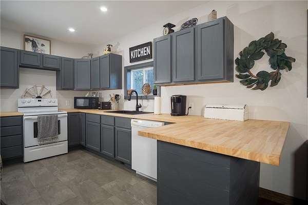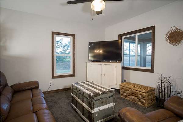 Looking for that perfect hobby farm? Here's your opportunity! This beautifully remodeled and modernized 3+ bedroom, 1 bath, two-story home sits on 5+ scenic acres and is ready for your rural lifestyle. Enjoy a 24x14 heated workshop w/newly added kitchenette w/water, a 34x64 pole shed w/electricity, a barn w/metal roof ('19), two silos, fenced pasture, garden area, and a 10x10 garden shed - everything you need for your hobby farm dreams! Inside, the open-concept kitchen features butcher block countertops, adjoining dining area, and cozy living room. The main level also offers two bedrooms, a spacious full bath w/double sinks, a 20x7 mudroom/back porch, and a welcoming 20x7 front porch. Upstairs includes additional bedroom(s) - one currently a walk-through that could serve as an office or flex space. The finished lower level provides a family room, laundry, and storage. Updates include new electrical and CAT 5 wiring, new water heater ('24), new septic pump (10/24), and insulated 2x6 exterior walls in the shop. A 16x20 carport and separate 20x24 cement pad complete the property. Don't miss this chance to own your own country retreat with all the right improvements already in place!