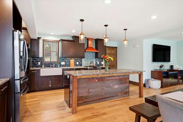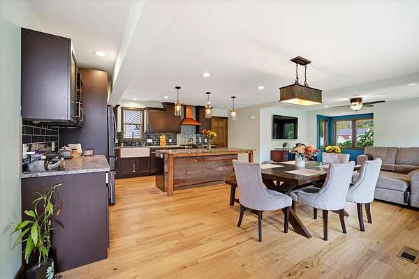 This stunning luxury homestead blends modern elegance with country charm, offering space, comfort, and sophistication at every turn. Be captivated by the beautifully updated kitchen, complete with a walk-in & butler's pantry perfect for entertaining. The main floor bedroom with ensuite plus private access is ideal for guests. Upstairs, find 5 spacious bedrooms including a nursery connected to the primary suite. All 3 full baths with heated floors. New roof & fully insulated basement. Outdoor living shines with a new paver patio, fire pit, and multiple outbuildings for hobbies, animals or contractors (current owner holds a conditional use for landscaping business). With endless possibilities and exceptional updates, this thoughtfully designed property is ready to welcome you home.