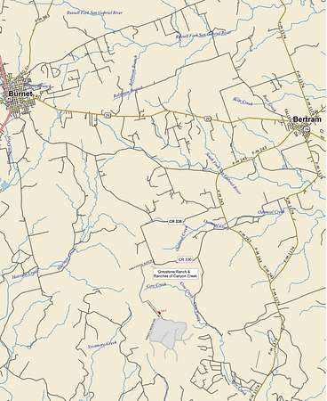 Gated subdivision off County Road 336. Shared entrance with Greystone Ranch. See maps in docs.