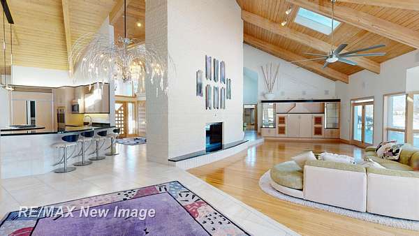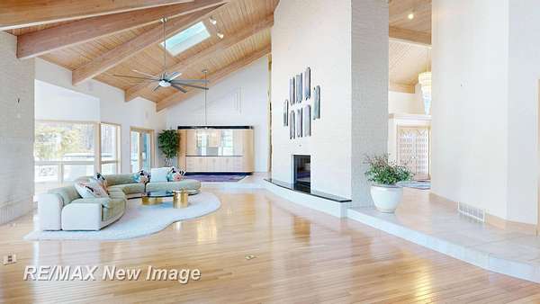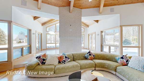 Welcome to one of the most impressive and immaculate luxury homes in all of Saginaw County. Nestled on 5 private acres in sought-after Thomas Township, this custom all-brick estate offers 5,108 square feet of exceptional design, craftsmanship, and elegance. A sprawling split ranch layout and immense architectural details are complemented by soaring vaulted ceilings and expansive windows that flood the home with natural light. The stunning primary suite is a true retreat, featuring its own fireplace, a huge walk-in closet, jet tub, and a spacious walk-in shower. The home includes a sunken living room with fireplace, a family room complete with built-in bar, a bright sunroom with in-floor heating and its own additional bar, and a large office/den/workout room to suit your lifestyle. The main floor laundry adds convenience, while two bonus rooms upstairs provide flexible living space for guests, hobbies, or storage. New boiler plus 2 gas forced air furnace and AC units. Newer garage doors. The possibility for a 4th or even 5th bedroom is there. At the heart of the home is a well-appointed kitchen with stainless steel appliances, perfect for entertaining or everyday living. Step outside to a massive wraparound patio with a built-in bar and grill—ideal for hosting unforgettable parties or relaxing family gatherings. Every detail of the property has been thoughtfully planned, including a heated, drive-thru 5-car attached garage with ceramic floors and a matching 60x40 all-brick detached 6 car garage featuring a small kitchen, half bath, and finished living or bonus space. Beautifully landscaped and meticulously maintained, this one-of-a-kind gem offers the perfect blend of luxury, privacy, and function. With a newer steel roof and skylights, 3.5 bathrooms (5 toilets), and unmatched attention to detail throughout, this is a rare opportunity to own a true estate in one of the area’s most desirable locations.