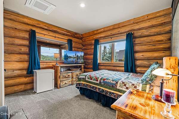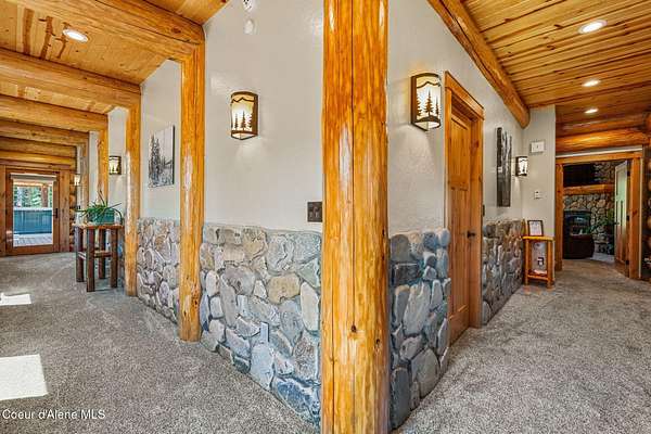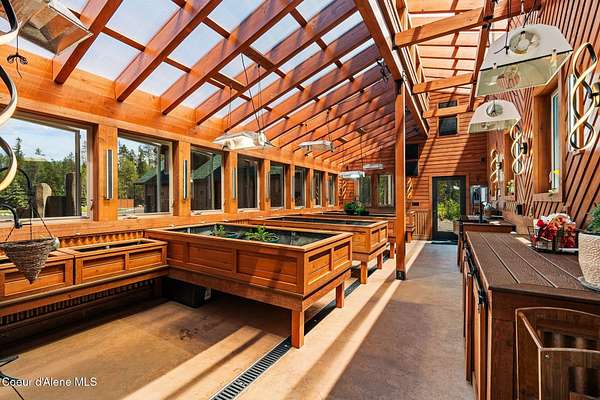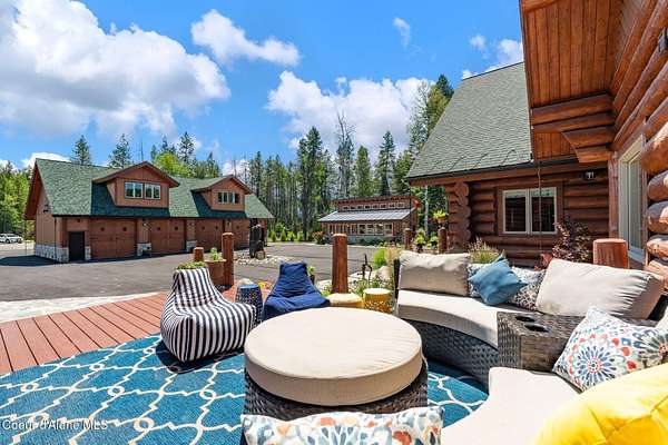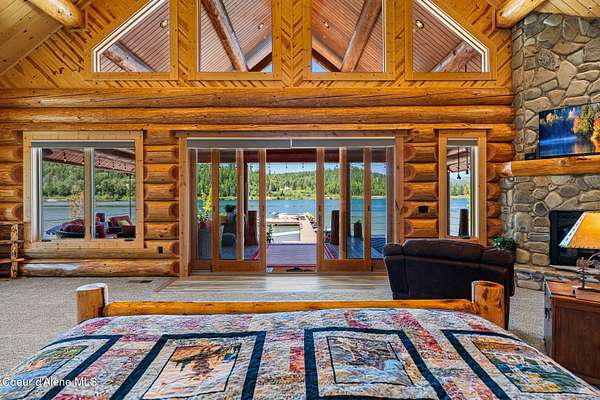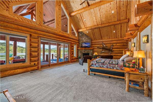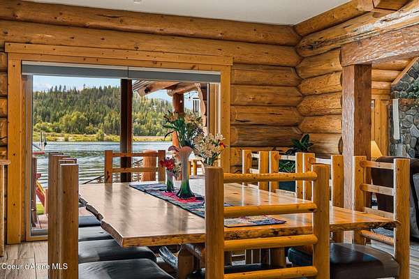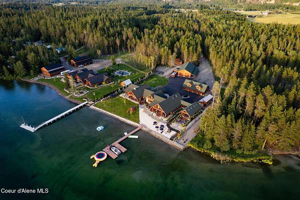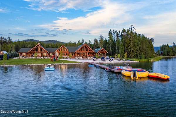 Experience the essence of North Idaho waterfront living with this magnificent Caribou Creek log home. Encompassing 7,748 square feet on 44.6 acres of pristine Pend Oreille river property, this residence showcases exceptional craftsmanship and natural beauty. Featuring six spacious bedrooms and five full baths, it provides ultimate comfort and convenience for family and guests. The centerpiece of the home is its expansive open-concept kitchen, living, and dining area, perfect for seamless entertaining. The kitchen is equipped with custom hickory cabinets, a sub-zero refrigerator, premium appliances, dual composite sinks, dishwashers and built-in microwaves making this a chef's paradise. A versatile loft area offers additional space for an exercise room or extra sleeping quarters. Downstairs, two bedrooms offer breathtaking views of the river and mountains, while three more bedrooms and an additional full bath are located upstairs. The master suite is a luxurious haven with vaulted ceilings, two walk-in closets, a Hydro Tub, and a walk-in shower with dual shower heads. The outdoor spaces are just as impressive, providing a perfect setting to relax and enjoy the natural splendor that surrounds this exceptional property. Fully landscaped with multiple water features and drip systems to keep all the plants thriving. The beach has imported Olympic Volleyball sand. Wash off with two outdoor showers and head up to the pavilion where you'll be invited to sit and cool off with the integrated misters, and a Bluetooth sound system. Carry out the ultimate party with a built-in BBQ and beverage fridge right next to the Passion Swim spa! For all those green thumbs there is a 16'x32' state-of-the-art greenhouse with radiant heated floors, integrated drip system, intake and exhaust fans, along with on-demand hot/cold water. They didn't forget the kids with the custom-built play structures. Fully insulated 60'x30' shop, 6 doors, 220v hook up, and a full upstairs area for storage. It is equipped with heat/ac. Head over to the 40'x80' shop where you'll find four 14' pull-through doors with 16' ceilings. The estate also comes equipped with a 60 KVA generator that powers the whole property! In addition, they have all the lighting on a dawn till dusk electrical system. Security and privacy is paramount, including over 30 commercial grade cameras with full 360 capability. This riverfront gem is a rare find, offering unparalleled amenities and an idyllic lifestyle. Too much to list, please ask your agent to see featured sheet for all the details on property. Owner financing possible with terms dependent on down payment.