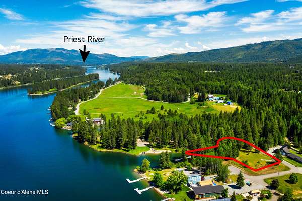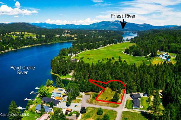 Ready for your dream house build! 257 feet of Pend Oreille waterfront in a protected bay. Just shy of one acre (.92 acres) on a private paved road. A short car ride or boat ride to the sweet town of Priest River, Idaho. This property borders a well-maintained community common area. Power, community water & sewer all available. A must see. Possible Owner Financing !