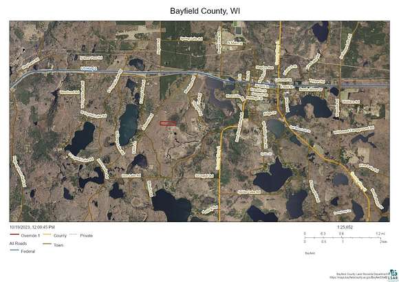 This secluded 9.43-acre parcel (Lot 2) is at the road's end. The land boasts a mix of mature oak, maple, birch, ash, and pine trees, making it a haven for various wildlife. Pink flags indicate the property lines, while orange flags mark potential locations for a driveway. You can clear 2 to 3 acres of high land to build your dream home, creating a space where your imagination can flourish. Power is available at the west end of the property, and Bayfield Electric Company and Norvado will soon provide telephone service, premium channels, and fiber optic internet. The sandy soil ensures good drainage for a conventional septic system, and you may want to hire a logger to clear some trees and prepare the land before you build. The property is just minutes away from thousands of acres of public land, with access to several miles of maintained trails for snowmobiling and ATV riding right from your driveway. Additionally, you are only a few miles from Iron Lake Road, where you can enjoy canoeing or kayaking on the Iron River for about a quarter of a mile. This area offers a variety of outdoor activities for families to enjoy year-round. The location is conveniently situated near several towns, including Ashland, Bayfield, Hayward, Superior, and Duluth, MN, providing easy access to the airport.