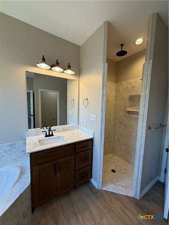 - Attic, Beamed Ceilings, Breakfast Bar, Built In Features, Ceiling Fans, Custom Cabinets, Double Vanity, Garden Tub Roman Tub, Kitchen Dining Combo, Kitchen Family Room Combo, Kitchen Island, Open Floorplan, Pantry, Pull Down Attic Stairs, Recessed Lighting, Separate Shower, Tub Shower, Vanity, Walk In Closets, Wired For Data