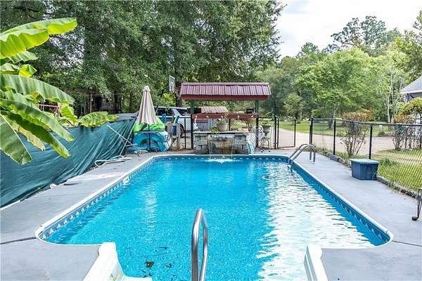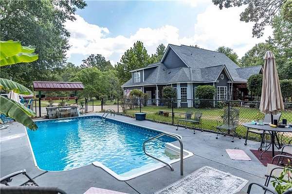 This home has it all. The main house features 4 bedrooms and 3 full baths and a half bathroom. Kitchen, breakfast room, formal dining room and lavish living room with stacked stone fireplace. Two car garage. If you want to go outdoors the options are endless. There is a lake with a fishing camp to clean and cook the catch of the day. Salt water pool with waterfall and fence. There is an additional man cave that features a living room, pool table, bedroom and bathroom. Fenced yard. Additional parking area. Barn for working on a hobby or another area to just hang out! There is additional acreage for a total dream escape nestled on 6.6 serene acres The location features privacy with the convenience of being in Opelika, Phenix City or Columbus. Have all you want in one home! The property also features an abundance of fruit trees and pecan trees.