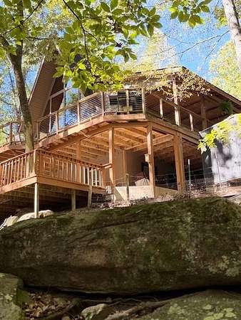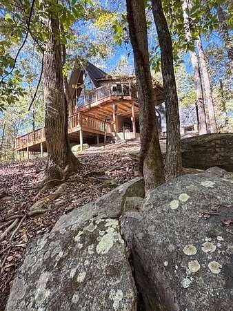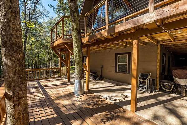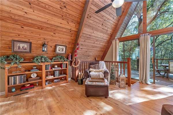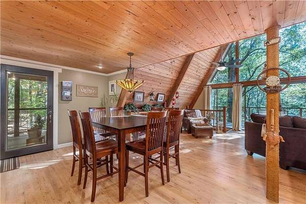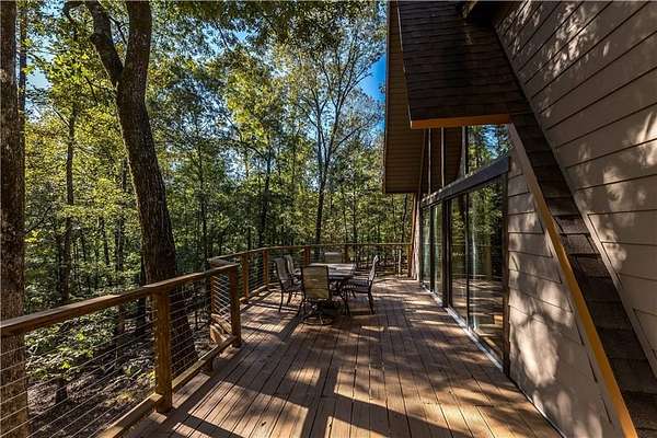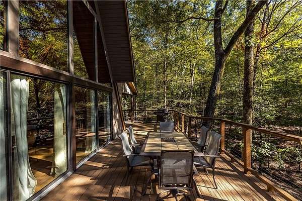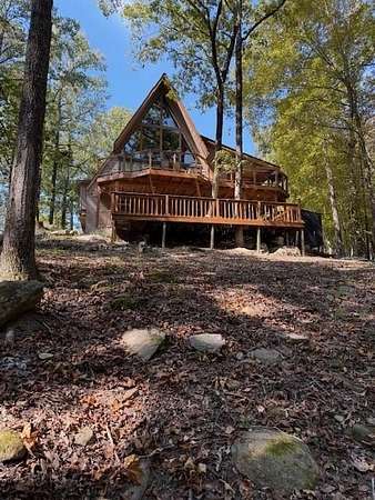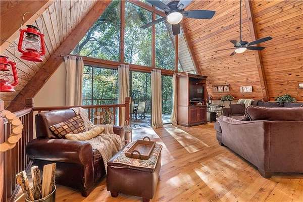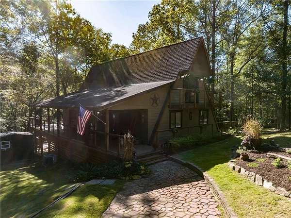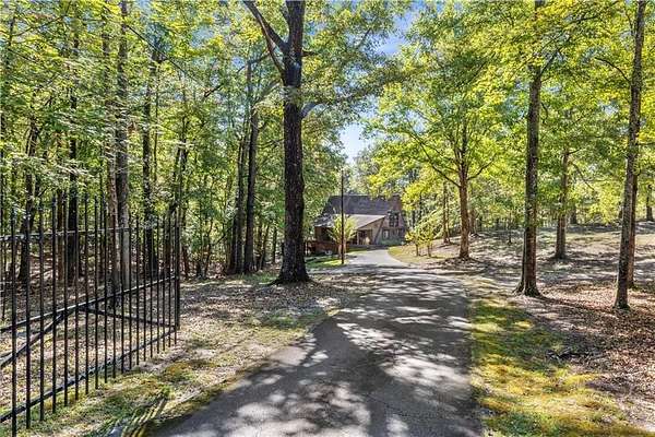 Nestled on a quiet country road in Salem Alabama just off Lee County Road 280 you'll find this spectacular 3 level / 4 Bedroom / 2 Bath A Frame home with wrap around decks in every direction. As you pull into the driveway you are greeted by elegant stacked stone columns accented by natural wood ranch style fencing and a private solar gate. As you descend along the long driveway you begin to feel yourself leaving the hustle and bustle of urban life and begin to relax and absorb the intoxicating beauty of this magical 6.5 acre wooded double lot. Gently rolling hills filled with hardwoods, pines, Douglas Firs, Dogwoods, Maples, Crepe Myrtles and Pear Trees, as well as scattered large granite deposits and a natural stream that flows just adjacent to this stunning home when it rains. Over 3 acres are fenced with a goat barn and chicken coop to house livestock. There's also an additional storage shed and lovely garden areas with local indigenous flowers and foliage. As you approach this home you'll be swept back in time as you take in the rustic charm and elegance of the spacious multiple level wrap around decks, balconies and porches all designed to enhance the experience of this home's connection with the beautiful nature surrounding it. Step inside the main living room where you are greeted by breathtaking 25 foot arched ceilings in the main living room , Douglas Fir beams, knotty pine tongue and groove ceilings bathed in natural light by the brand new floor to ceiling double paned 25' Apex windows and doors. Step through the doors on to the breathtaking deck with wood and steel wire railing overlooking the natural beauty that surrounds this home in all directions. The Island Kitchen is well appointed with stainless steel appliances, upgraded LED lighting, ample custom wood cabinetry + counter space and charming accents galore! Master Bedroom on the top floor is an oasis from the world with en-suite newly remodeled Master Bath with his and hers vanity and seamless glass shower, custom lighting and upgraded plumbing fixtures. There's a lovely loft just steps away overlooking the main home below or step out on to the front deck to enjoy a sunset view or enjoy a cup of coffee as you prepare for your day. On the main level you'll find 2 additional well appointed spacious bedrooms and a tastefully remodeled full bath with adjacent laundry room. All appliances transfer with this very special home. Downstairs you'll find a large living area with a home office, personal home gym and additional living area which could easily serve as a 4th bedroom/wing perfect for a very private teenage, in-law of guest living area. The possibilities are endless with the lower level of this home and lead to another full wrap around walk out patio and deck area overlooking the peaceful grounds full of endless details and charming nature and wildlife and surround this very special home. Located just 23 minutes from Columbus GA, 30 min to Auburn University, 38 min from Fort Benning, GA and just 90 min from Atlanta Hartsfield Airport this home is truly a convenient oasis from the world! With highly rated Lee County schools to include Wacoochee Elementary, Smiths Station Middle and High Schools with busing available this is the perfect family home to raise children in this desirable faith based and grounded community filled with kind neighbors and endless activities. Most of the furniture and accessories are negotiable if there is interest or it could be removed based on buyer's needs....Welcome home!
