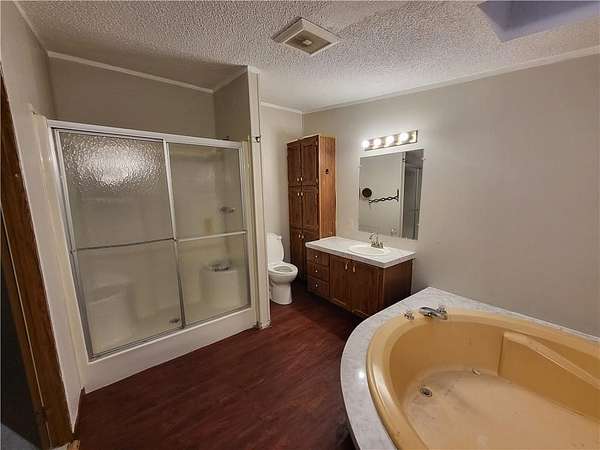 Est $972/moClean and move-on ready. Beautiful 2.95 acres level lot. Woods on the right side of the property. Detached metal carport. Metal shed with electricity. Formal Living and Dining Room areas. Family Room with fireplace and built in bookshelves. Kitchen with island area and lots of cabinet space. Sun Room. Storage Room. Nice covered front porch with ceiling fan and swing. Large wood deck on the side. Level rear yard with chain link fence. Lots of options with this home and land.