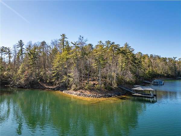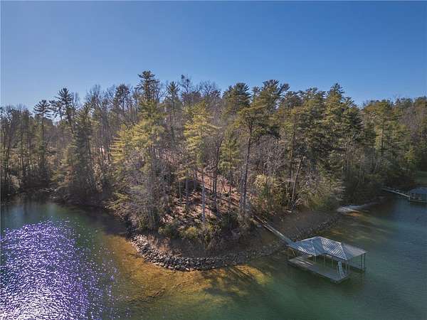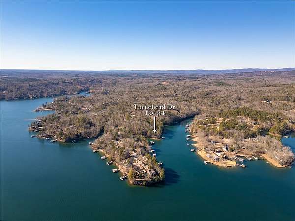 Beyond spectacular and a rare find now on lake Keowee! 1.92-acre waterfront point lot with mountain views, sheltered cove, sizable separation from neighboring houses and a nearly level build site- a rare combination. 627 feet of shoreline with Oconee Prime rock and a new covered dock installed in 2025. Located in the north lake community of Turtlehead, this subdivision provides a gated entrance, boat ramp, pool, pickleball court, and a boat storage facility. Water tap fee is 13K. Boat storage fee $500 a year. HOA is $1760 per year. SEE SUPPLEMENTS FOR 6540 SQ FT FINISHED CUSTOM HOME SITE PLAN FOR CURRENT OWNERS BY RON WELCH WITH ARCON CONSTRUCTION.