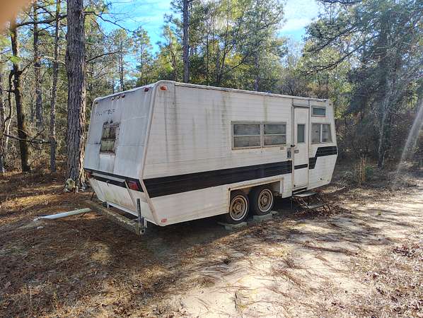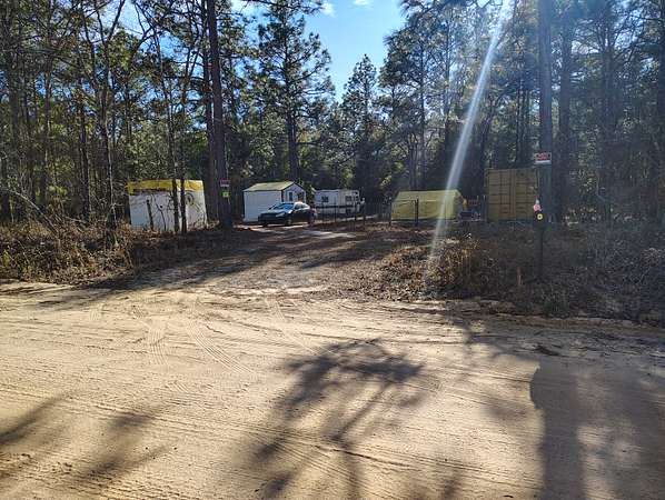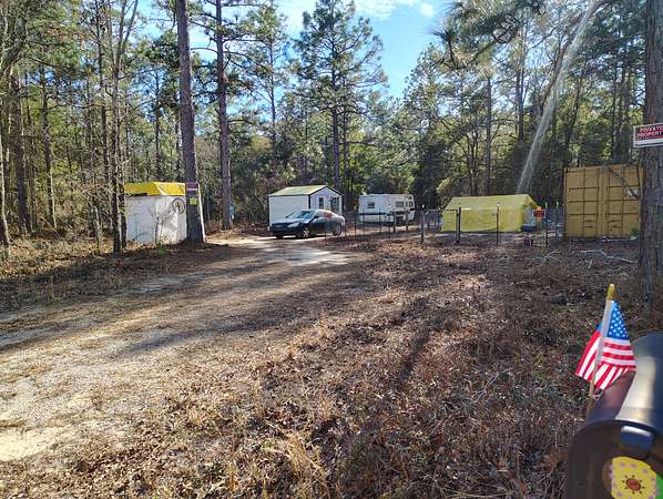 2 acres of improved rural land with functional electricity, running well water, and a camper with its own septic system. Includes a finished 120 sq ft tiny-house shed (no plumbing), a gutted 1976 camper with power/water/toilet/shower/hot water (clean title), a shipping container with door + 2 windows, and a chicken coop with fenced area. About ¼ acre cleared. Clean and clear land title, taxes current, no HOA.
