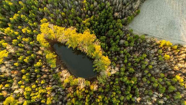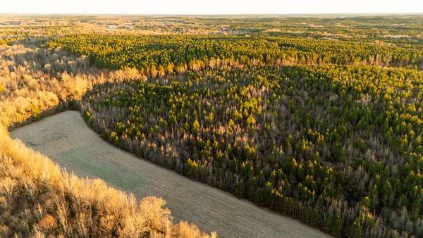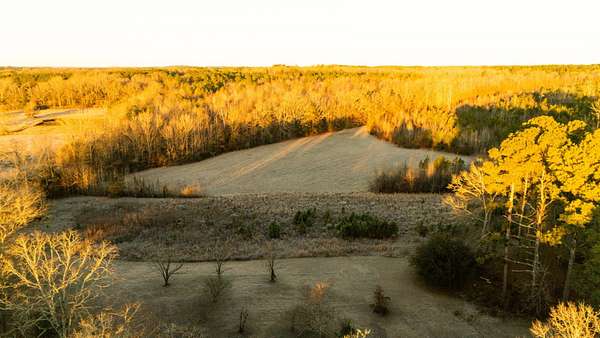The variety of timber ages and types provides excellent cover, bedding areas, and travel corridors for deer and turkeys. The open fields and food plots offer prime feeding areas, while the creek running through the property and a pond provide a year-round water source for wildlife. The rolling topography creates ideal upland bird habitat and natural bedding areas for deer and small game, making this a well-rounded recreational tract.