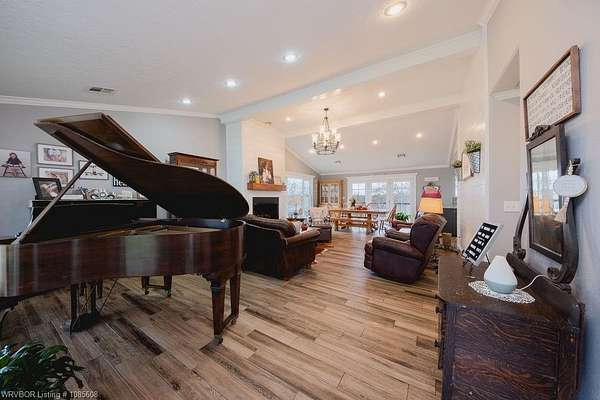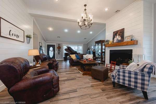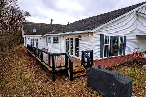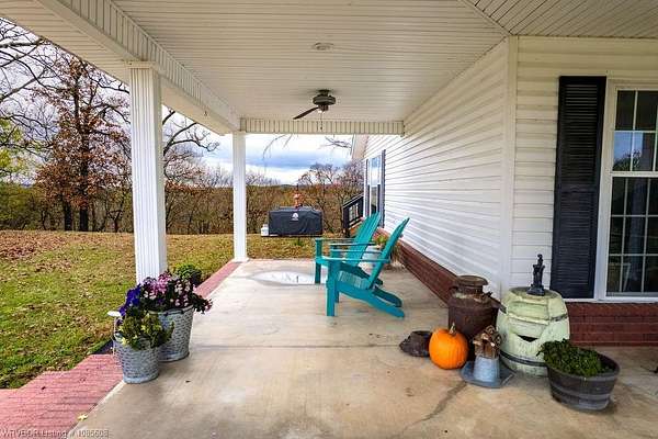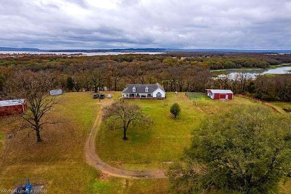 Enjoy the views of the Sequoyah National Wildlife Refuge right out your back windows! This property sits on 20 acres that are crossed fenced and has a pond. The home has a large porch, tile floors, zoned hvac, granite, gas fireplace, open concept, 4 bedrooms, 4 BATH, 2 water heaters, and more. You will enjoy high speed Cookson Hills fiber internet. There is a 24x36 shop building that includes a 24x24 area thats insulted, wired, and HEATED concrete floor. This building also has a 15x36 lean to and 2 horse stalls. There is a second metal building that is 30x50 with 12 ft sidewalls and 4 horse stalls. This is great place for horse lovers and cattle.