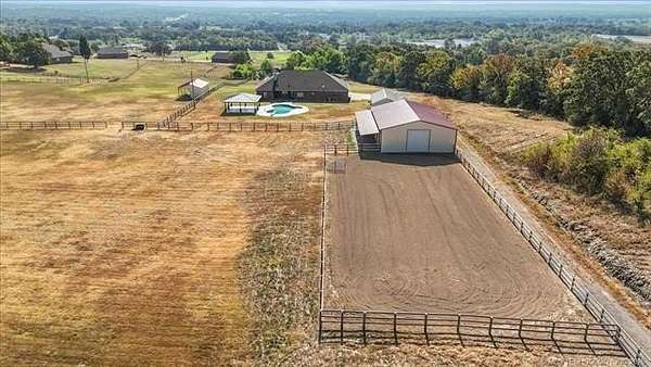 Welcome to 107188 S 4570 Rd, Sallisaw, OK 74955--your equestrian dream come true! Set on a breathtaking 21.74-acre estate in the foothills of the Ozarks, this property offers the ultimate blend of rural tranquility and modern comfort. Step inside the custom-built brick home, featuring a spacious 4-bedroom, 2-bath layout designed for both relaxation and entertaining. The open-concept living area is flooded with natural light, creating a warm and inviting atmosphere. Enjoy the oversized 3-car garage--perfect for vehicles, equipment, or your next big project. Horse lovers will be delighted by the expansive acreage, ideal for riding, training, or simply soaking in the panoramic views of rolling hills and lush pastures. There is a barn, stables, and arenas to make an equestrian paradise. Located just minutes from Sallisaw's charming downtown, you'll have easy access to local favorites like Wild Horse Mountain BBQ, Walmart Supercenter, and the Sallisaw City Park. The property is also conveniently close to Highway 64, making commutes and trips a breeze. Whether you're seeking a peaceful retreat, a working horse ranch, or a family homestead, this property delivers it all. Don't miss your chance to own a slice of Oklahoma's natural beauty--schedule your private tour today and experience the magic of country living! Ready to saddle up and make this dream property yours? Reach out now!