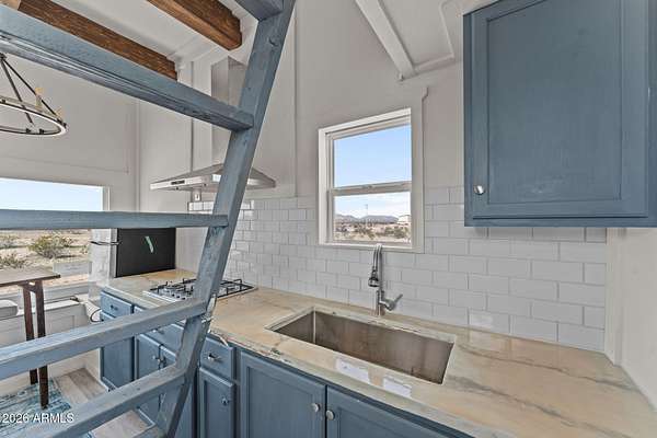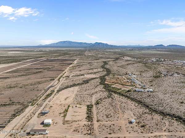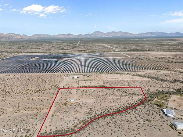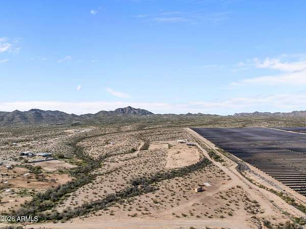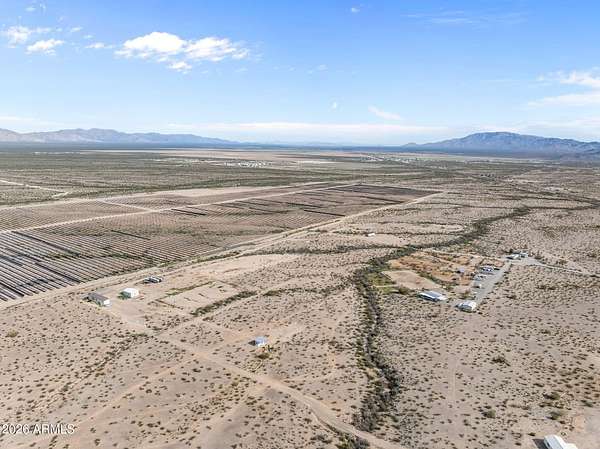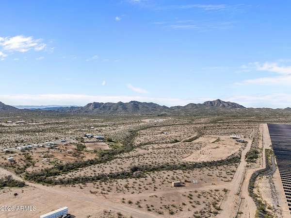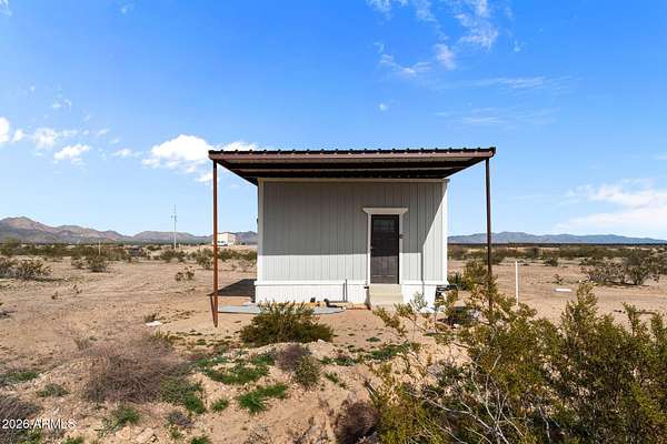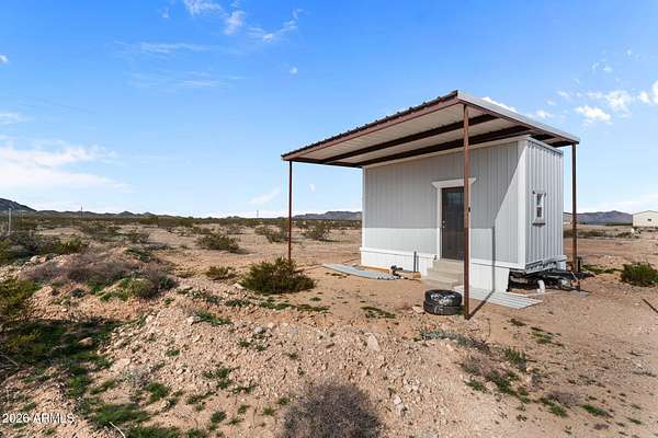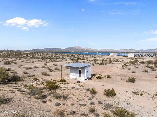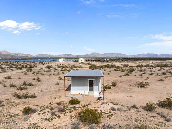 Set on more than 5 acres of level desert terrain with wide views of the McMullan Valley, this small desert retreat offers a simple and efficient living space with room to expand. The loft-style structure includes a kitchenette, bathroom, and upper sleeping area, making it an easy option for seasonal use or a place to stay while planning future improvements. Power is nearby, the septic system is installed and connected, and the property benefits from a shared well. The adjoining parcel is also available, creating the opportunity for an expansive holding of more than 18 acres at the end of the road with excellent mountain and valley scenery. A great option for anyone looking for space, privacy, and a head start on infrastructure in this quiet Arizona desert setting.