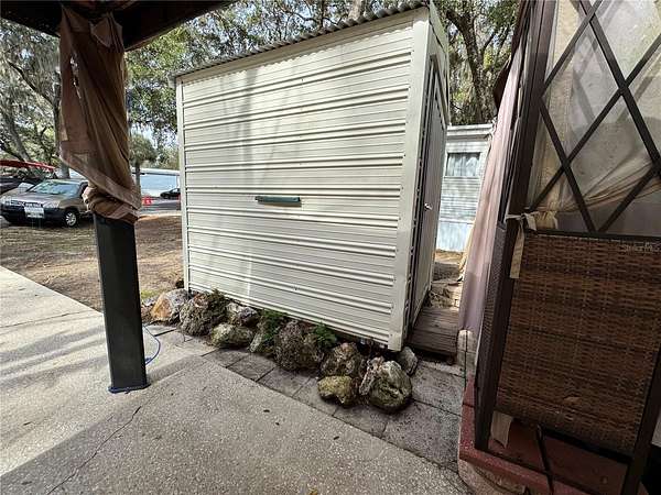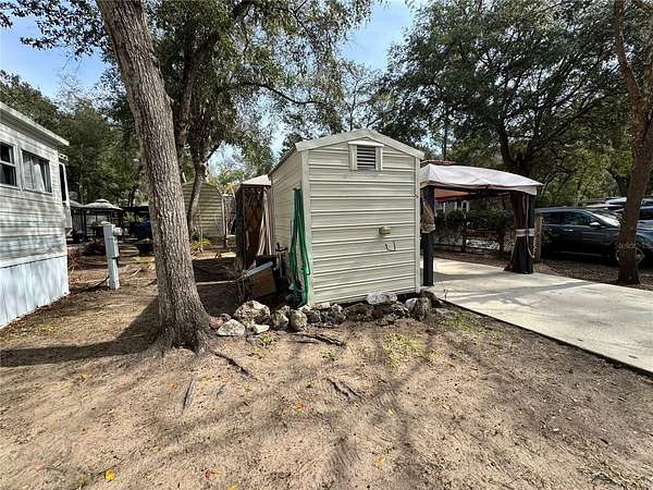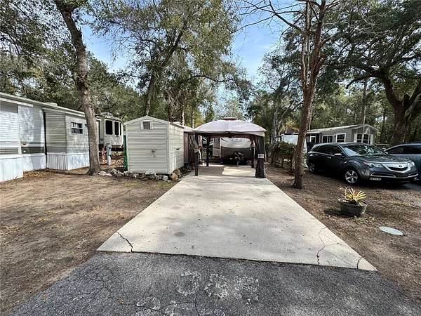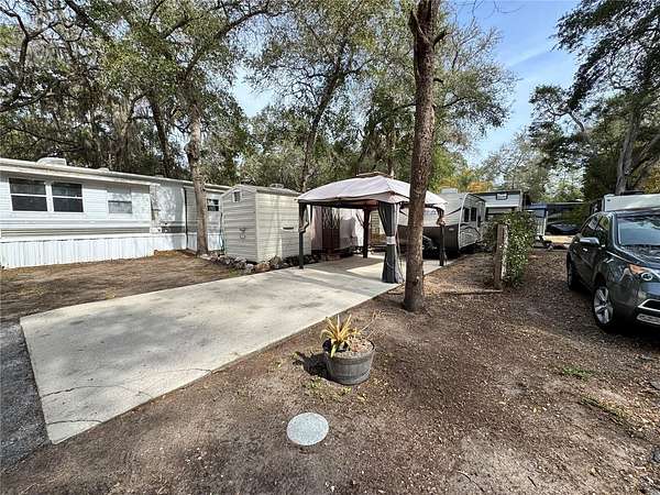 I-75 exit 352 go east towards Daytona on Hwy 40. Travel on hwy 40 13.6 Miles to the intersection of 314 & hwy 40. Turn Left on to hwy 314 travel 18.1 miles and merge on to Hwy 19. Go 1 mile on hwy 19 and turn left onto hwy 316. Go 445 feet to entrance of community. Proceed to gate and speak with security. Access should already be called in, drive 420 feet to NE 141 st, turn left on to NE 141 St go 148 feet. Property is on the right hand side with the shed and small camper in driveway.