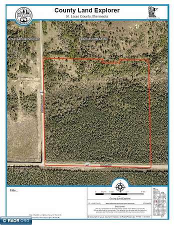 Est $307/moWelcome to this 39.88 +/- acre parcel of land in Angora, MN. This property has road frontage on two sides for easy access. It appears to be fairly level to low ground with some area of higher ground. There may be a decent sized area in the NW corner for a potential build site/cabin. Power is near by. Lots of signs of wildlife for hunting/recreational. There may also be some timber value. Tons of public land nearby. Buyers to do their own research as far as intended use is concerned. Priced for quick sale. Call today!
