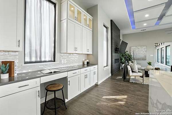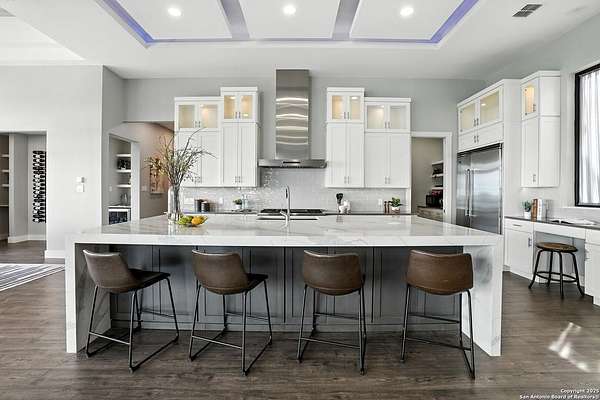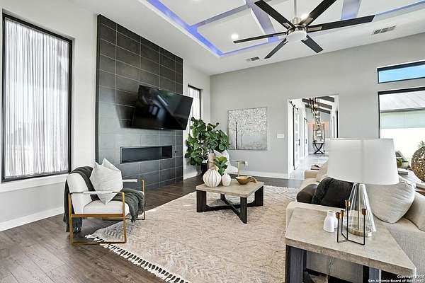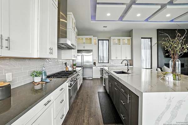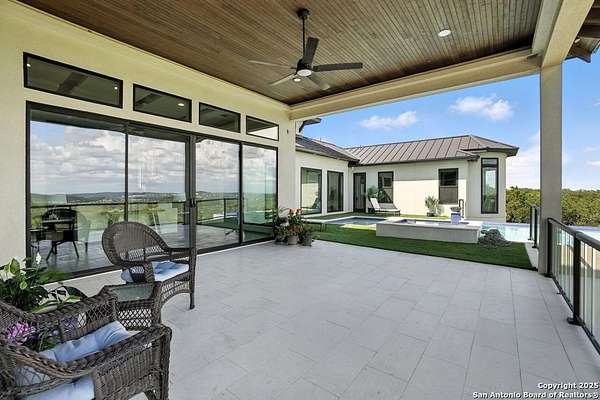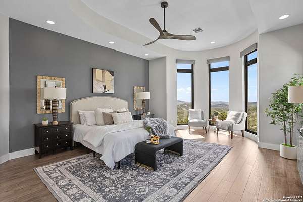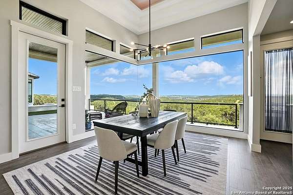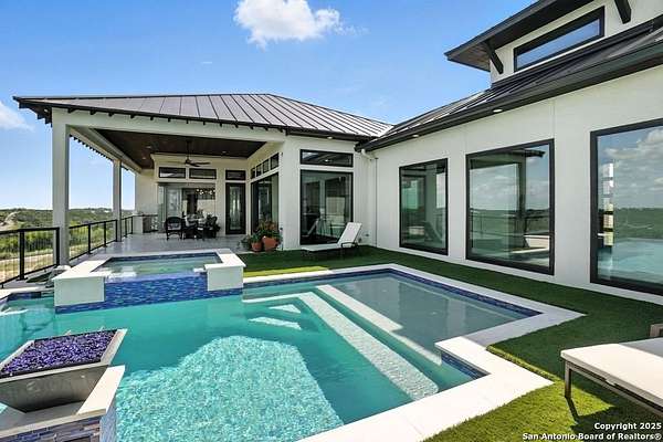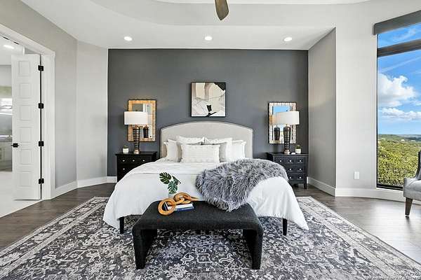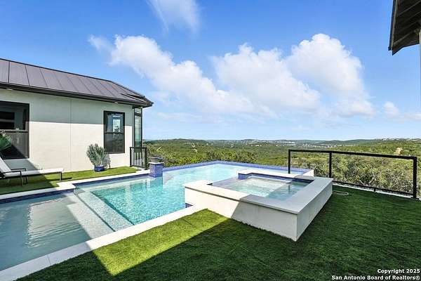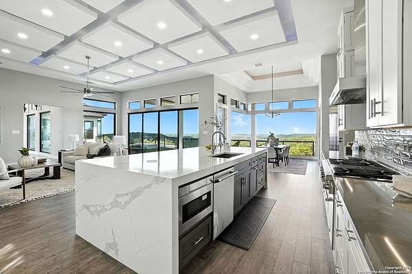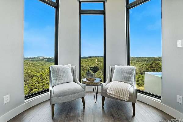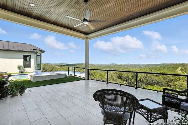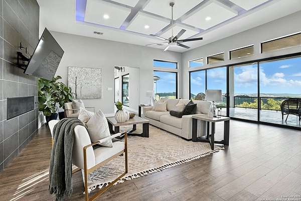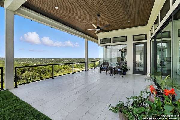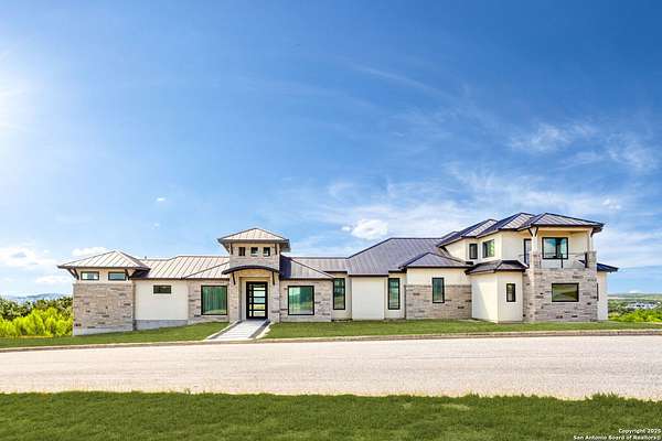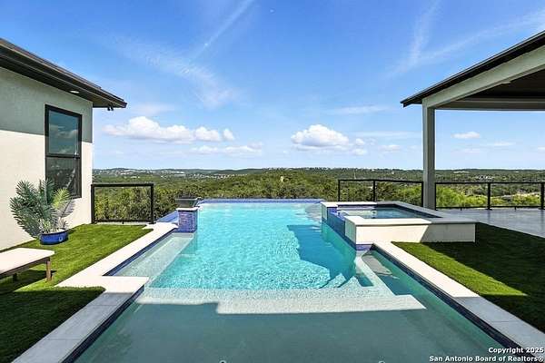 If you are looking for your Dream Home, this is the Smart Life Home for you. Spectacular Unobstructed Texas Hill Country Views for Miles, must see to appreciate. Modern amenities and upgrades are generously encompassed throughout this 1.6 acre hilltop Estate, easy access, level entrance. Travertine Foyer and entrance hallways leading into beautiful living area with gas fireplace and spacious open floor plan with cloud/pillow lighting and colors regulated. The Kitchen has large quartz island and countertops, Viking Refrigerator, Thermador Range and Dishwasher. Ceiling fans throughout home and special lighting indoors and out. Dining room and lovely wine storage area enough to hold 72 of your favorite bottles. Large walk-in Pantry with butler's pantry/coffee station. This home also has 2 utility areas with washer and dryer connections one in it's own closet, built in ironing boards, between the Master closets and one on the other side of home. Master bedroom has wonderful views of miles of hill country and access the swimming pool and voice activated window treatments. Two Large Walk-in Master Closets with built-in shelving, The Master bath has amazing Tub and Grohe Shower System, Separate Vanities , hidden ceiling fan. Swimming pool area has access to a bathroom, etc. Covered Patio contains built in Bull 5 burner BBQ grill. Large Office and a Bonus room for Exercise or additional Bedroom. This home is built for easy living and boasts 5 bedrooms, 4 full bathrooms, 2 half baths, 2 living areas, 1 downstairs and 1 upstairs with more bedrooms with bathrooms and wet bar upstairs, and lovely balcony in front to enjoy the amazing sunset views and beautiful sunrise mornings in the back! This outstanding home has many more amenities, a must view to appreciate. Six flags over Texas fireworks display is viewable over southern hilltop horizon! Very private area, conveniently located close to shopping, schools, restaurants, etc. Come take a private tour, you will not be disappointed! Smart home controlled by Smart Life app. Please follow driving directions in remarks for easiest and best route. Gated community, gate code. Very impressive home for your astute and discriminating buyer. ZONED HVAC SYSTEM. ADJOINS proposed 250 acre Nature Preserve area according to land owner. The uniqueness of this home will astound your Buyers!