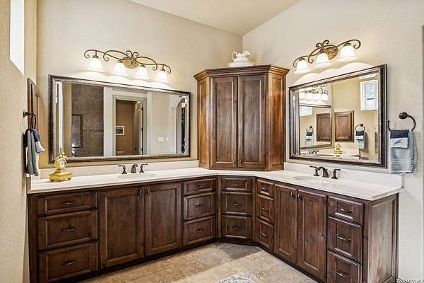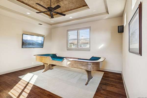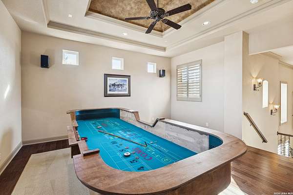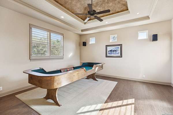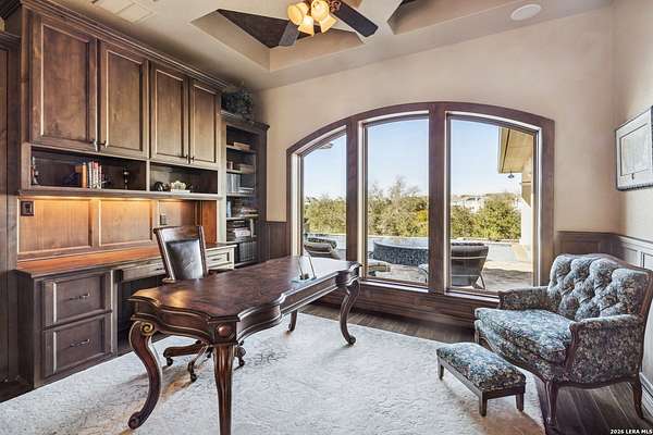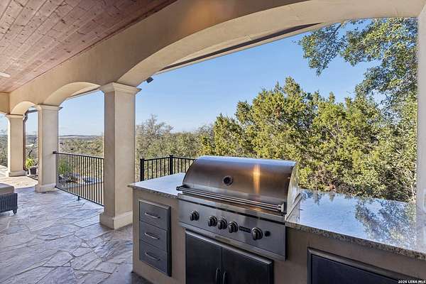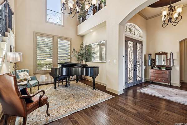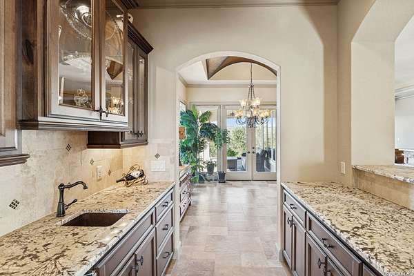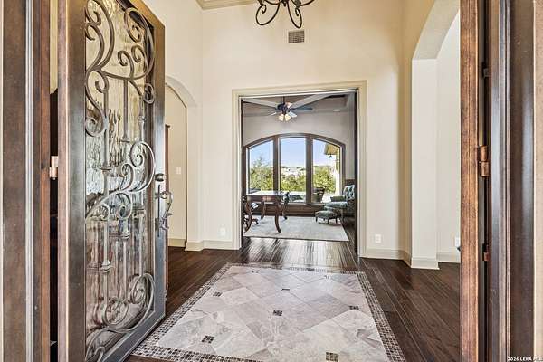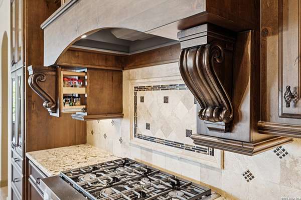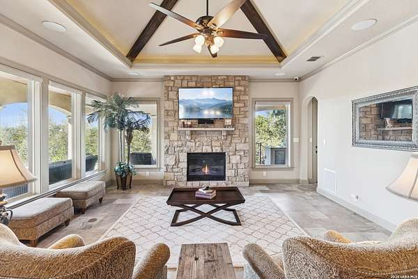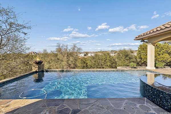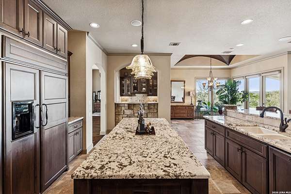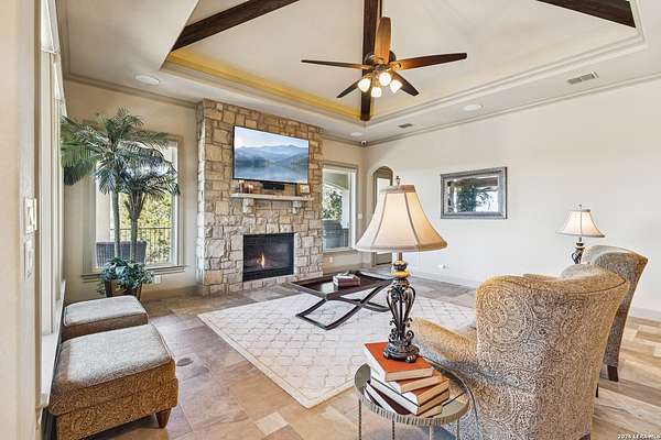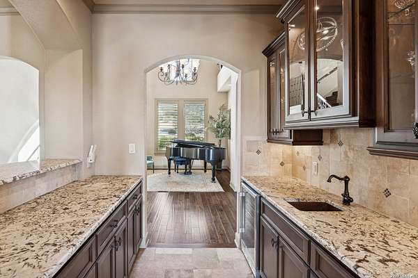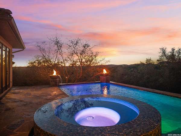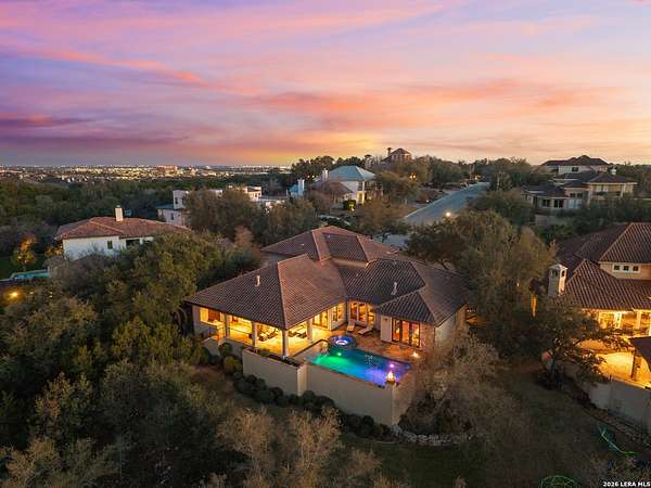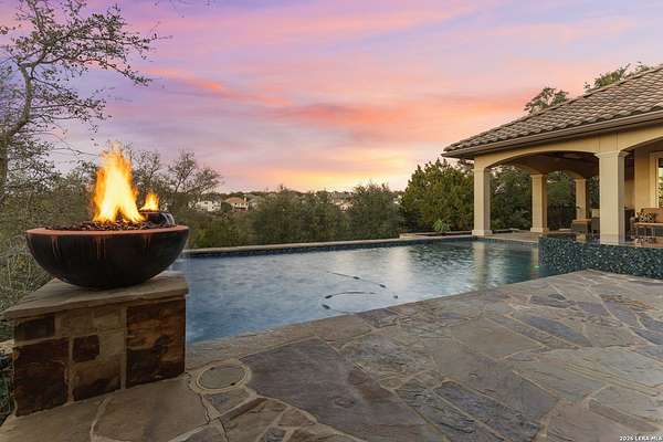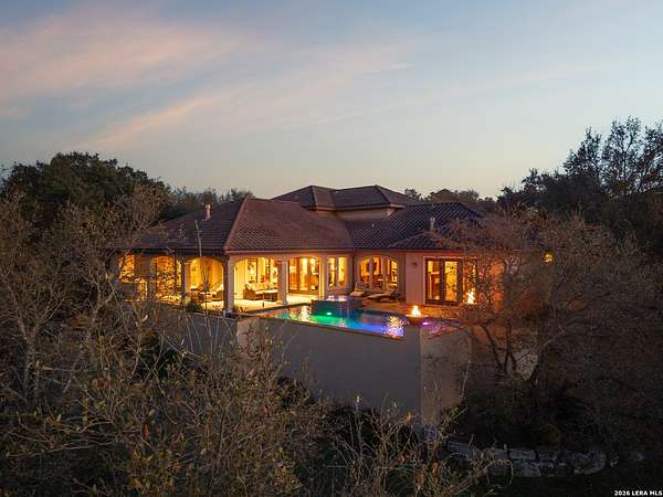 Welcome to 20427 Terrabianca, an original-owner home, meticulously maintained and gently lived in. Built by award-winning Mattern and Fitzgerald, this custom residence delivers scale, craftsmanship, and a lifestyle-forward layout designed for both everyday ease and elevated hosting. Offering 4,089 square feet with 3,347 square feet on the main level and 742 square feet upstairs, the home lives beautifully with the primary suite and two additional bedrooms downstairs, one bedroom currently used as a flex/workshop, PLUS a study overlooking the pristine pool. Upstairs, enjoy a private bedroom and full bath, along with a bonus room, game or media room, storage, and a Texas basement for the seasonal items you want out of sight, but close at hand. The kitchen is built for serious cooking and effortless entertaining, featuring a panel-ready refrigerator, six-burner gas cooking, a hidden spice rack, upgraded granite, reverse osmosis, soft-close cabinetry, and under-cabinet lighting. An open-concept butler's pantry adds wine storage, display space, and expanded serving capacity. The family room is anchored by a gas fireplace and thoughtful in-floor power for modern living. Step outside to a backyard that feels like a private resort: a heated pool and raised infinity-edge spa, specialty lighting, and fire bowls with waterfall spillover, plus freeze protection, auto-fill, and recent replastering and re-tiling. With a pool-access half bath, two gas fireplaces, surround sound systems, and three zoned HVAC systems, let's not forget EV ready for your electric vehicle, this home is designed to impress and built to perform. Schedule your private showing and experience Terrabianca in person.