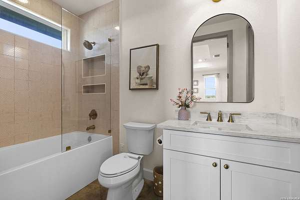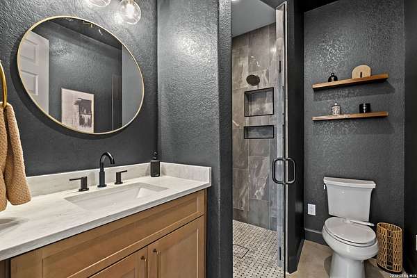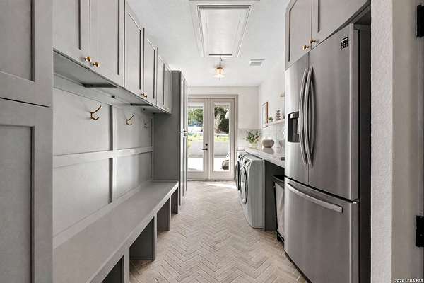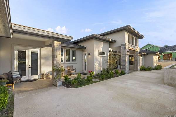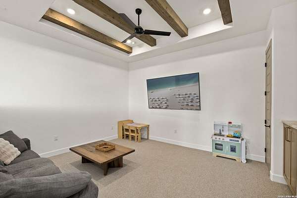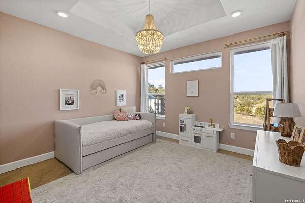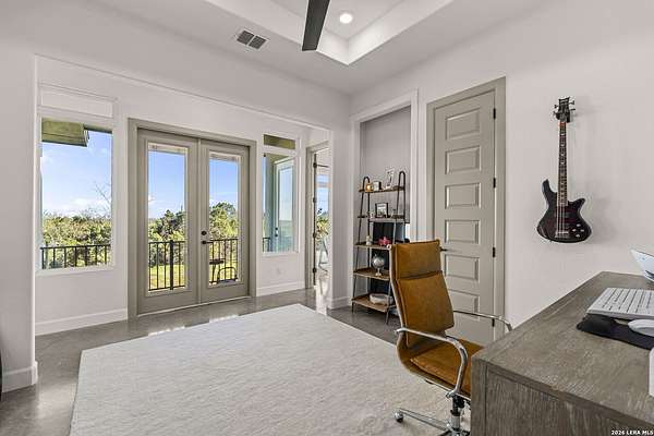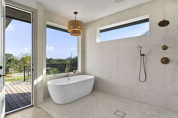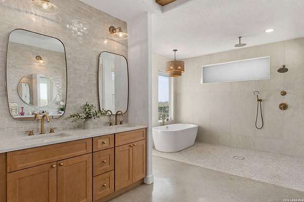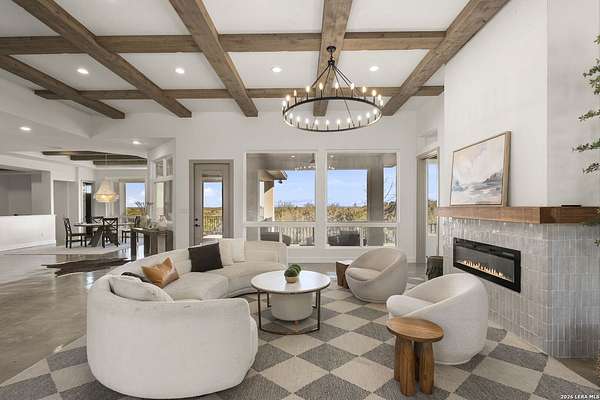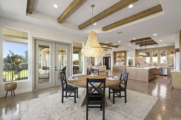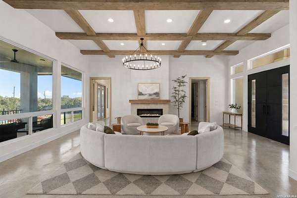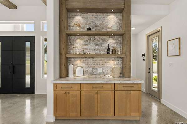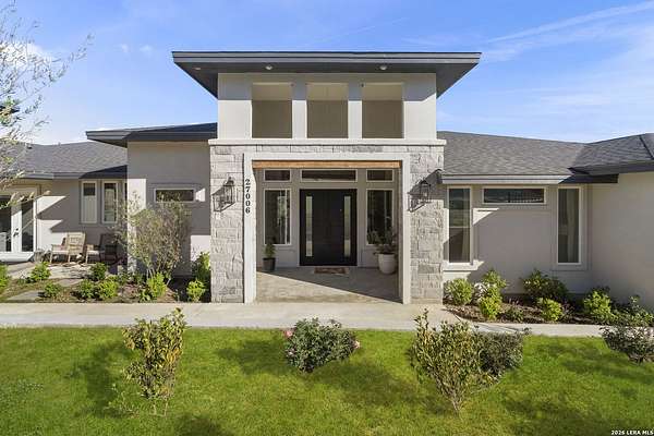 Hill Country Luxury | Custom Home with Sweeping Views in Ramble Ridge Stunning and move in ready! Completed in 2025, this meticulously crafted custom home sits on a scenic 1.66acre lot in the gated community of Ramble Ridge. Despite feeling like a private retreat, it's no more than 10 minutes from local highways and shops. A massive estate style driveway with a 20 ft roundabout provides effortless access to the three car garage and plenty of guest parking. Mature oak trees and solar accent lighting add evening ambiance. A custom concrete stairway with illuminated columns lead to grand 8 ft double iron doors. Inside, a soaring great room showcases basketweave wood beams and a fully open concept kitchen, living and dining area with 180 degree scenic views. The chef's kitchen boasts high end marble countertops with a 2 inch custom edge, a 48 inch JennAir range, a matching 48 inch refrigerator, custom cabinets with built in hood, and a thoughtfully designed cook nook with custom lighting and shelves. A bespoke bar area makes this space perfect for entertaining. Down the hall you'll find a custom laundry room with utility sink, quartz counters, abundant cabinetry and space for a secondary fridge. Two secondary bedrooms feature their own bathrooms with walk in showers and closets, plus scenic views. The primary suite serves as a private retreat with custom beams, a huge walk in shower and soaking tub overlooking the lush yard, a private deck for morning coffee, and an expansive walk in closet with island and quartz countertop. An additional bedroom with walk in closet and detached full bath can flex as a guest suite or a personal gym. The fully fenced, gated backyard is landscaped with mature plants and trees and includes a timer controlled irrigation system and fresh sod. With controlled community access, a low HOA fee and the convenience of being minutes from everyday amenities , this custom estate blends hill country seclusion and modern luxury. Come tour today before it's gone!