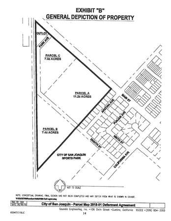 From Manning: Turn North on S Main St, left on California, Right on 8Th to dead end. Parcel is adjacent to the City of San Joaquin Sports Park.