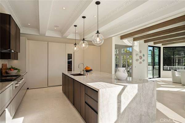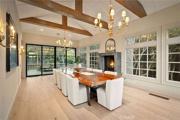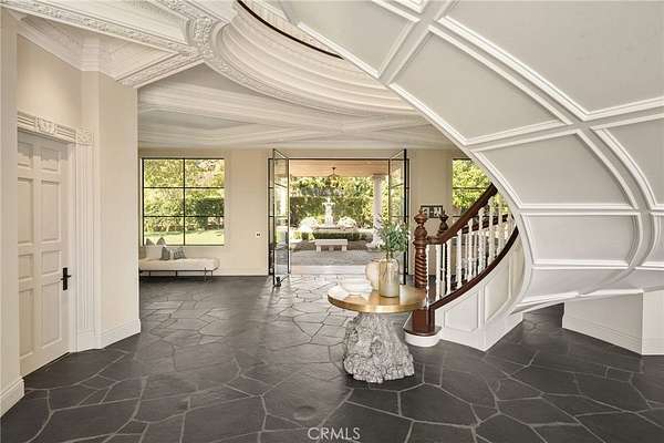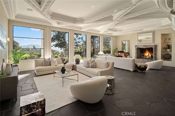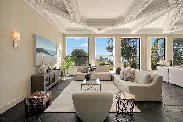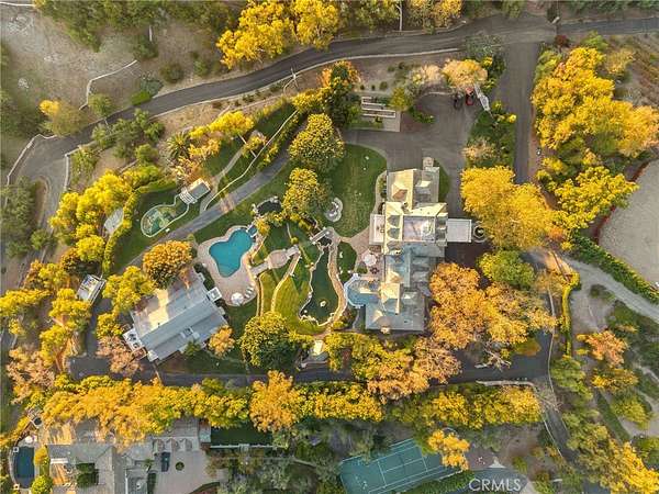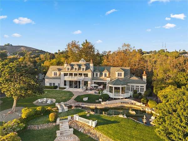 The grounds are simply breathtaking. Panoramic canyon & ocean views unfold across acres of terraced lawns, orchards & olive groves. A 33,000-gallon koi-filled lake, meandering stream & perimeter walking trail bring nature to your doorstep. Resort-style amenities include a pool & spa, outdoor firepit, BBQ pavilion with TV, multiple loggias & terraces, private gym/chapel & parking for 50+ vehicles arranged around the circular motor court.