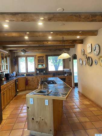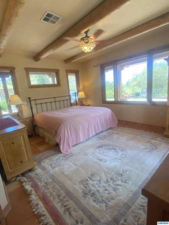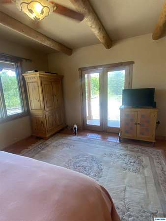 Stunning Southwest style home on 45+ acres with river frontage. This spacious 1BD/1.5BA is over 1500 square feet with views, yet secluded. The layout of the home offers easy access to the outdoors from anywhere. There are Saltillo tiles throughout, along with viga beamed ceilings sourced from Pinos Altos. The kitchen has plenty of cabinetry with African slate countertops that are both beautiful and practical. A large laundry room with deep sink and cultured marble countertop makes chores a breeze. There is a small orchard with apple, cherry, peach, pear and mulberry trees alongside a flourishing raspberry patch and raised bed gardens with asparagus, squash and other vegies. Outbuildings include a shed/workshop as well as a Morgan building with loft storage, spacious enough to accommodate a small SUV or car. Both buildings and home have underground utilities. Tractor and 8 implements included w/ full price contract. More pics soon. Shown by appointment only with your Real Estate Broker.