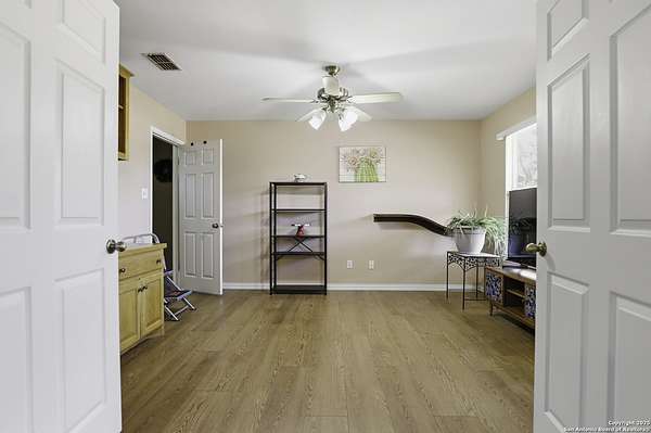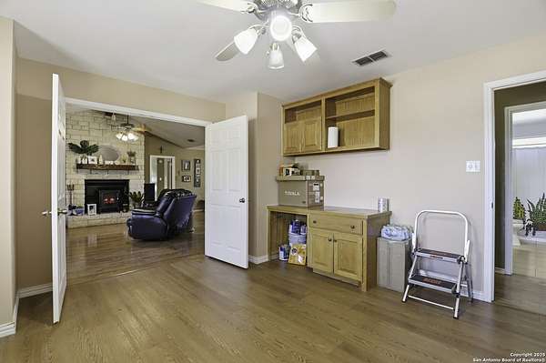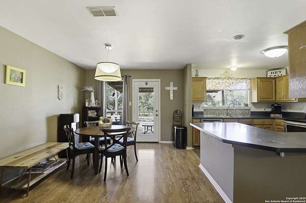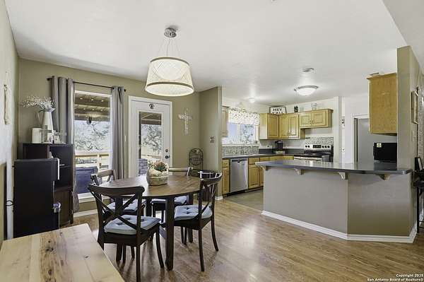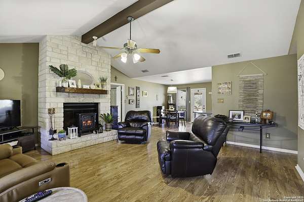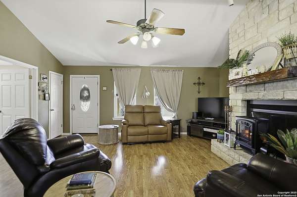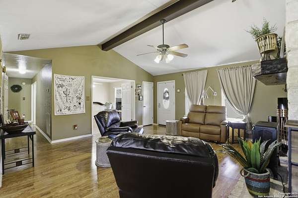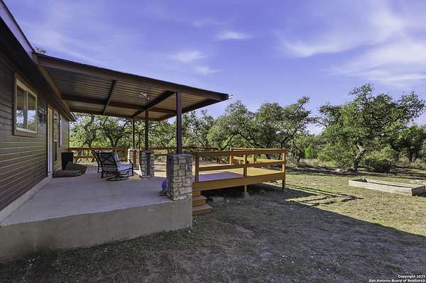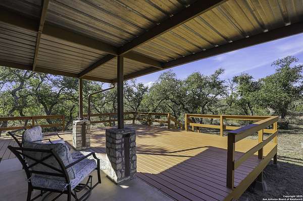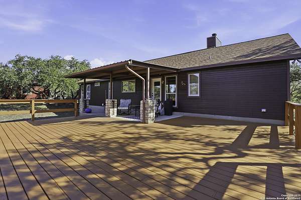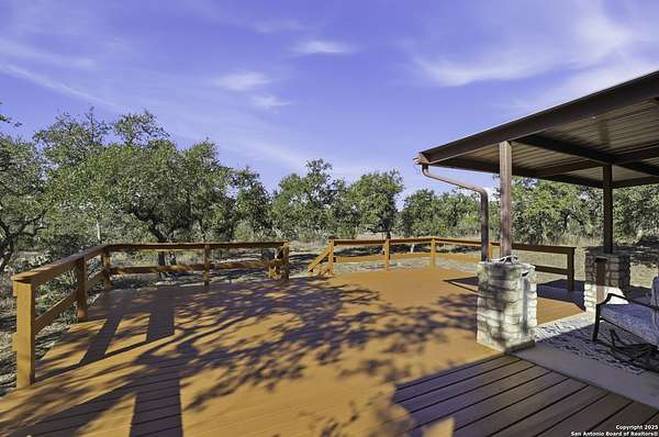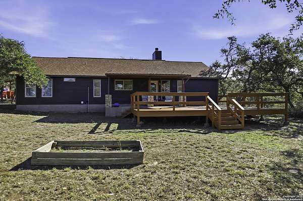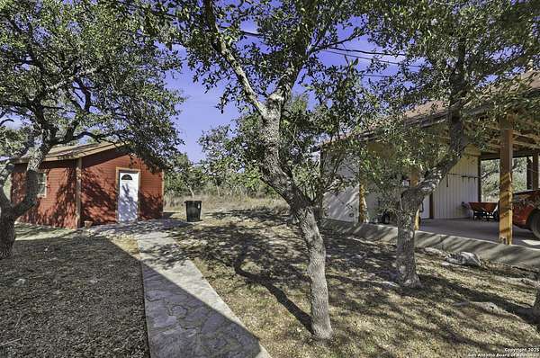 Hill Country living at its finest! Tucked away at the end of a quiet cul-de-sac on 5.4 peaceful acres, this charming single-story ranch home offers privacy, expansive outdoor living, and the kind of natural setting buyers dream of. Surrounded by mature oaks and wide-open skies, this property is perfect for anyone seeking space, serenity, and the freedom of country life - all while being just minutes from San Marcos amenities. Step inside to a warm, inviting interior featuring a spacious living room with vaulted ceilings, a beautiful stone fireplace, and plenty of natural light. The kitchen offers ample cabinet storage, stainless appliances, and a functional layout for everyday living and entertaining. This flexible floorplan includes 3 bedrooms plus a dedicated office or optional 4th bedroom, giving you the versatility to work from home, host guests, or create a hobby or media room. Out back, you'll fall in love with the massive deck overlooking the oak-covered acreage. Whether it's morning coffee, evening sunsets, or weekend gatherings, this outdoor space is truly a retreat. Beyond the main home, the property includes a 1212 studio building with power and water - perfect for a home office, art studio, workshop, craft room, or quiet getaway space. There's also an oversized covered carport with storage, ideal for trucks, equipment, recreational vehicles, or ranch gear. With room to roam, space to expand, and all the peacefulness of the Hill Country, this property offers a rare combination of privacy and practicality. Bring your vision and make this incredible property your own.