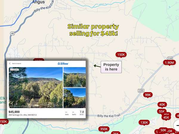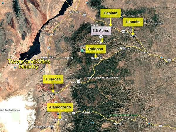 The property is conveniently located approximately 5 miles from Alto and about 13 miles from Ruidoso, where you'll find shopping, dining, entertainment, and medical services. Cloudcroft is roughly 27 miles away, known for its cooler mountain climate and outdoor recreation, while Roswell is about 70 miles east, providing access to larger city amenities. Nearby attractions include Lincoln National Forest, Sierra Blanca Peak, and numerous hiking, biking, fishing, and hunting opportunities.