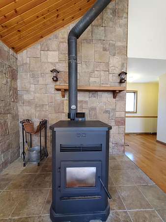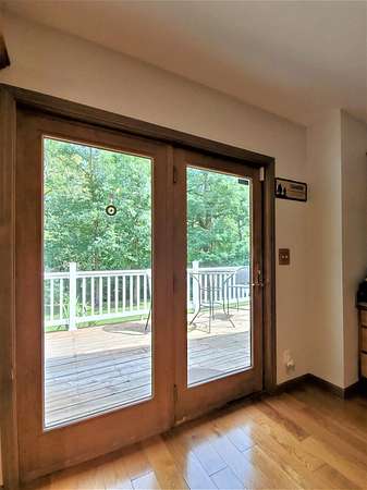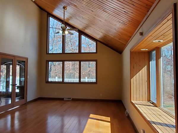 Est $1,973/mo9 WOODED ACRES - Cozy 3 Bedroom 2 Bath Cape Cod with full poured walled basement. Home is located in a clearing in the woods. Living room has vaulted tongue & groove ceiling, pellet stove & French doors. Spacious kitchen has Haas hickory cabinets, island with French doors to 30 x 10 deck. Home has 6-inch walls, Anderson Windows, skylight & open staircase. Detached finished 2 car garage with bonus room on upper level.