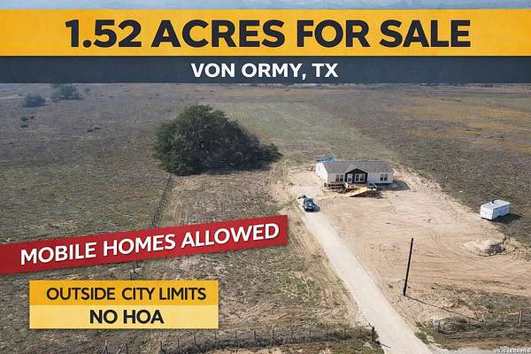 Build your dream home or place your mobile home on this spacious property located on Sanctuary Lane in Von Ormy, TX (78073). Nestled on a private dead-end road, this lot offers the perfect blend of privacy, peaceful surroundings, and flexibility. Whether you're ready to build a custom home or looking for land that allows manufactured or mobile homes, this property provides excellent possibilities. Enjoy the quiet country feel while still being just minutes from San Antonio, giving you convenient access to shopping, dining, and major highways. If you're looking for land with freedom and opportunity, this property is a great place to start your next project or future homesite. Downtown San Antonio - ~20 minutes South Park Mall - ~18 minutes H-E-B / major shopping areas - ~15 minutes IH-35 Access - ~10 minutes San Antonio International Airport - ~30 minutes
