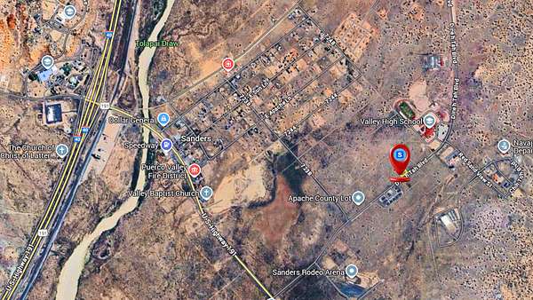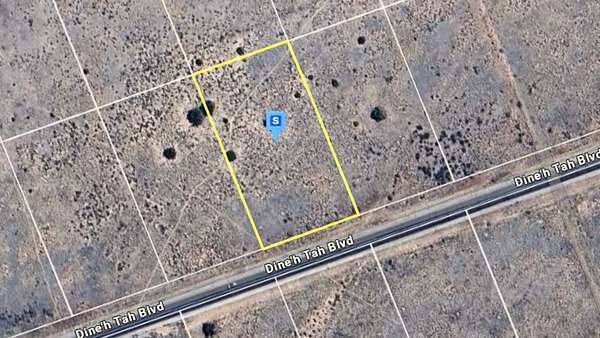 This parcel sits right on the main road, Dine'h Tah Blvd - a county-maintained paved road, so you can get there any time of year with a normal car. It's literally opposite to the well-kept White Mesa Apartments complex, so you already have that nice neighborhood feel, and power is close by.