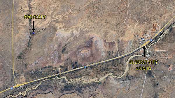 The surrounding area features open high-desert landscape with distant mesa views. The property is located approximately 15 minutes from Sanders, Arizona.