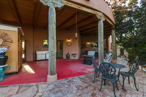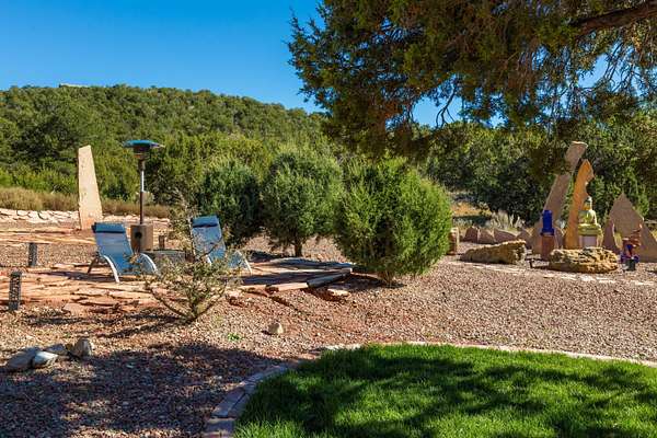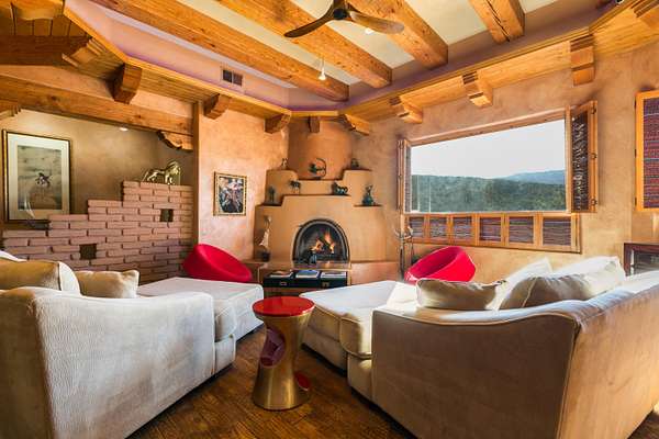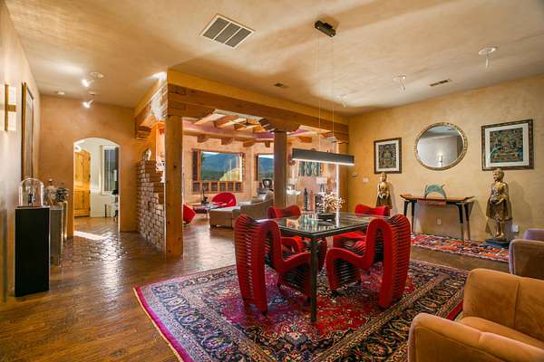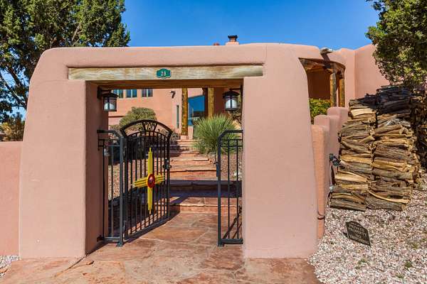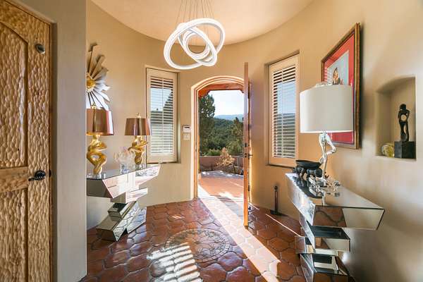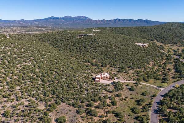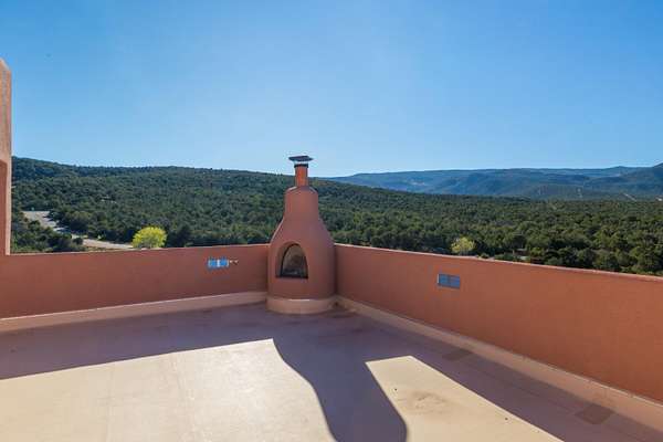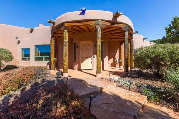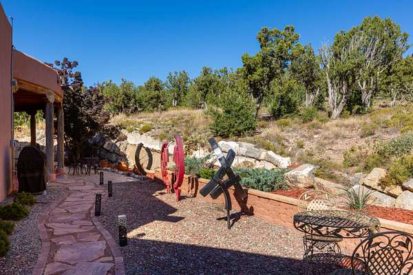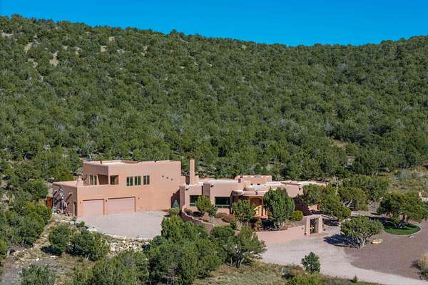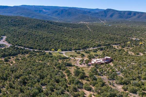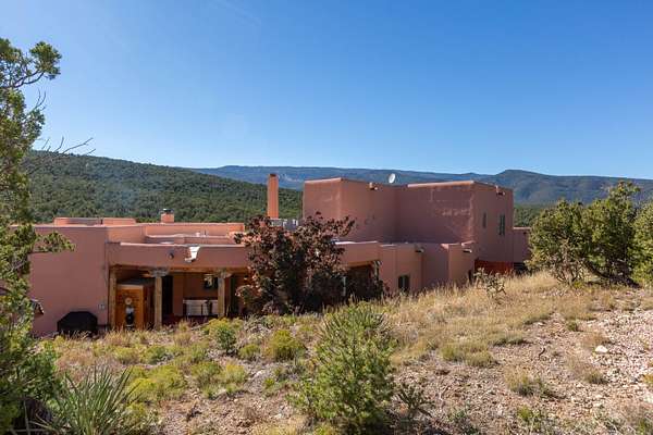 Experience the essence of high-end Northern New Mexico architecture, perfectly set against the backdrop of the breathtaking Cibola National Forest. This unique property boasts unobstructed views that discerning buyers will truly appreciate. From the moment you step into the enchanting foyer and journey through the home, you'll be captivated by the luxurious finishes. Marvel at the multiple kiva fireplaces, the soaring viga ceilings with clear vistas of the Sandias, and the clay plaster walls enriched by beautiful handcrafted hardwood and gleaming Mexican Saltillo tile flooring. Warm earth tones throughout create an inviting atmosphere, perfectly complemented by the radiant heat that you'll seldom need, thanks to the home's highly efficient RASTRA construction. Unwind in the sumptuous