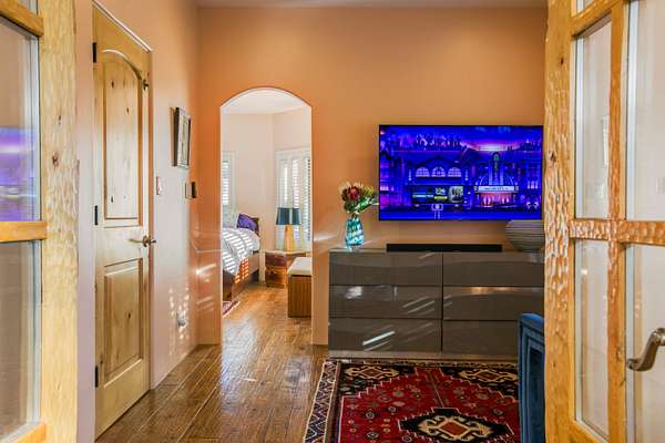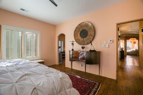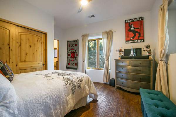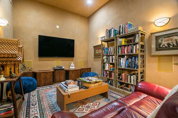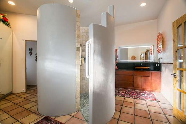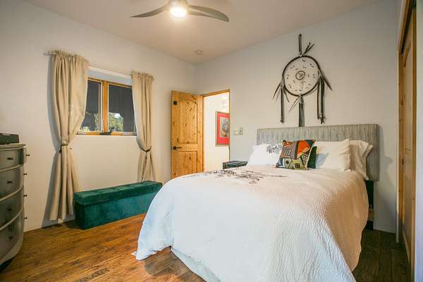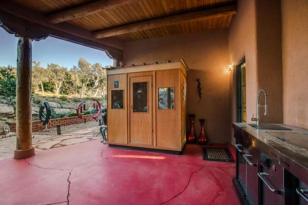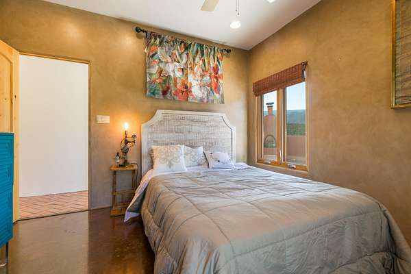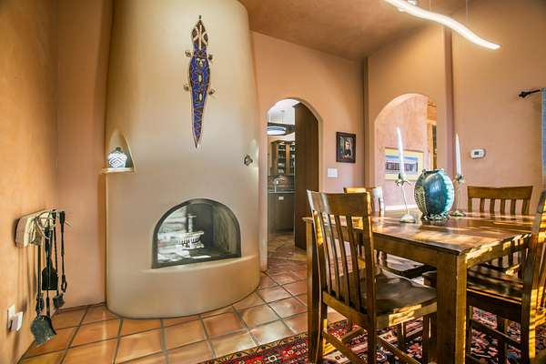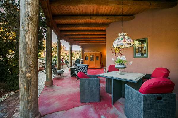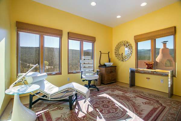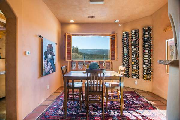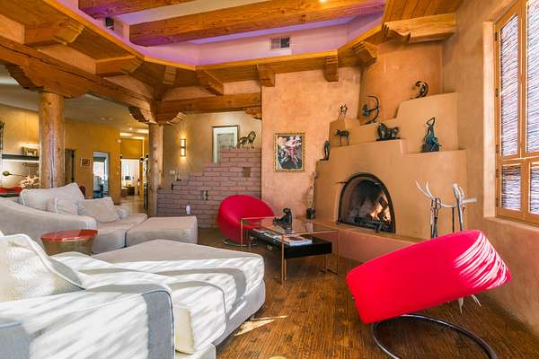 Experience the essence of high-end Northern New Mexico architecture, perfectly set against the backdrop of the breathtaking Cibola National Forest. This unique property boasts unobstructed views that discerning buyers will truly appreciate. From the moment you step into the enchanting foyer and journey through the home, you'll be captivated by the luxurious finishes. Marvel at the multiple kiva fireplaces, the soaring viga ceilings with clear vistas of the Sandias, and the clay plaster walls enriched by beautiful handcrafted hardwood and gleaming Mexican Saltillo tile flooring. Warm earth tones throughout create an inviting atmosphere, perfectly complemented by the radiant heat that you'll seldom need, thanks to the home's highly efficient RASTRA construction. Unwind in the sumptuous