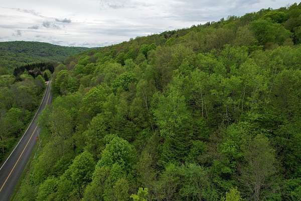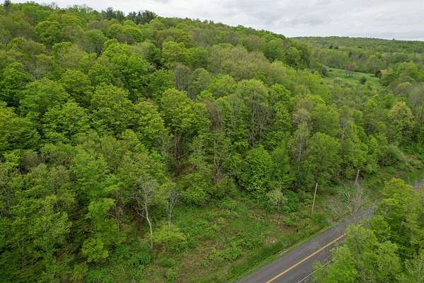 Est $514/moVacant land offering- 19.773 surveyed acres full of deer, turkey and other wild animals. It has County road frontage and electric at the road, various levels of terrain and is nearly completely wooded. A small mountain stream flows through and is probably ideal to build one or more ponds. A cool old Bluestone quarry remains. Great land for hunting or perhaps build a house. Located in the low-tax Town of Tompkins just a few miles north of Hancock, NY. Although there is over 702 feet of road frontage, one can drive right into the property on the right-of-way with a 4wd.