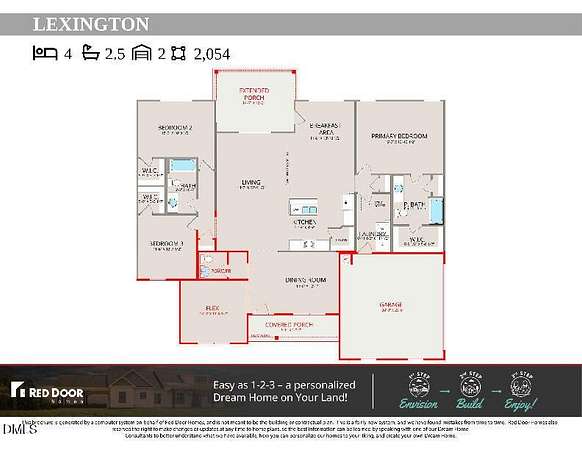 Discover 44.64 acres of peaceful, picturesque countryside, a perfect setting for your brand new home. Welcome to the Lexington plan by Red Door Homes, a thoughtfully designed one-level layout where timeless elegance, contemporary Southern comfort, and true flexibility come together. The Lexington features an inviting light-filled open-concept living area, a formal dining room, and a flex room ideal for a home office or creative space. With 3 bedrooms, 2.5 Baths, and 2054 square feet, this home provides both comfort and style. Enjoy a beautifully crafted Craftsman exterior, side-load garage, a covered porch, and spacious primary suite with walk-in closet. The design provides freedom to expand and customize, offering the perfect foundation to create your dream home on acreage. A dedicated laundry room, quality finishes, and the ease of one-level living complete this exceptional plan. The listed price includes the 44.64 acre lot, an ESTIMATE of lot finishing/site work/permits, and the base price of the home plus specific predetermined options. Buyers will also have the opportunity to personalize their home; additional upgrade costs may apply depending on selections. All pricing, availability, site conditions, construction feasibility, and included features are subject to change at any time and are not guaranteed by the listing agent. Buyer is responsible for working with Red Door Homes to obtain all inspections, soil tests, surveys, and any other evaluations needed to determine if the property meets their intended use and if the home can be built on the site. Final costs will vary based on results of due diligence, builder pricing, and chosen options. *County water runs along S. Plank Rd. However, a well may be desired/needed. *Images of home are examples only and may show optional upgrades not included in the list price.