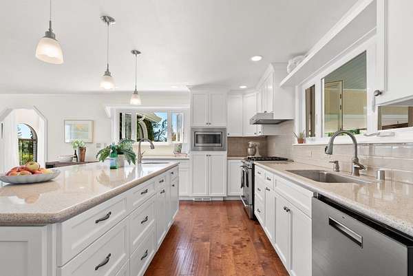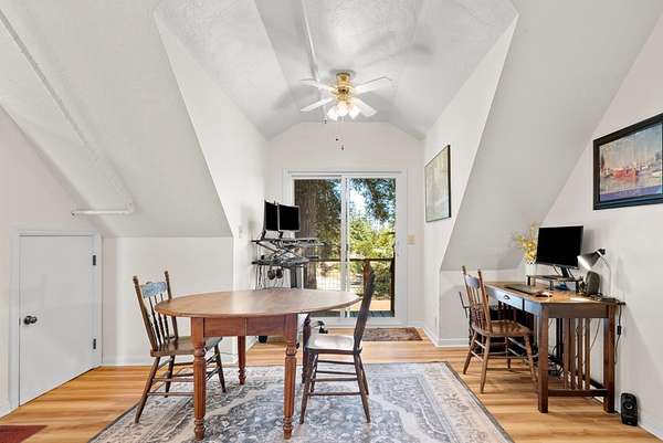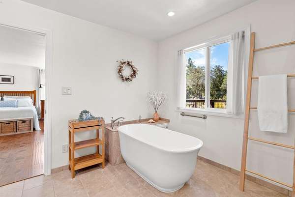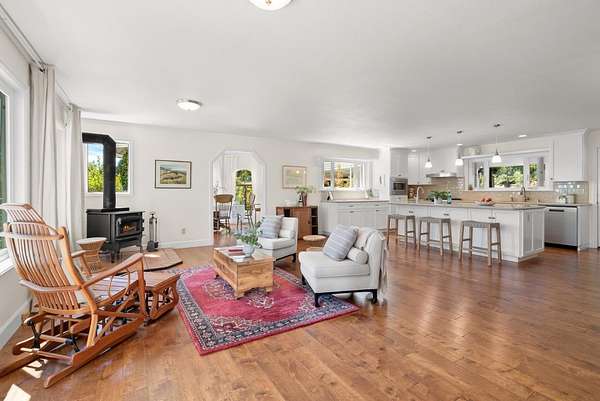 Discover Stillpoint, where a former Zen retreat center, soaked in sunlight, becomes your own everyday escape. Set behind a gated entry, this one of a kind 2.5 acre estate is a private haven of peace and beauty. This versatile property offers several structures and residences.The 4BR/3.5BA 3,819 square foot main home is full of natural light. The kitchen and primary bathroom are updated with timeless finishes. The home feels warm and welcoming with hardwood/ bamboo floors, and a wood stove. Soak up the sun on one of several expansive decks. A permitted 2BR/1BA 902 square foot ADU sits above the 3-car garage, complemented by a detached 330 square foot studio guest house and a flex space/office with half bath off the primary suite balcony. Enjoy a private saltwater pool and spa with solar and propane heating, a full-home backup generator, 14kW owned solar, and high-speed internet. Landscaped grounds include gardens, orchards, patios, and trail access to Fall Creek State Park. With an RV hookup, potential pickleball court, fenced perimeter, and multiple living spaces, Stillpoint is a rare blend of functionality and restorative calm, where the name truly reflects the experience.