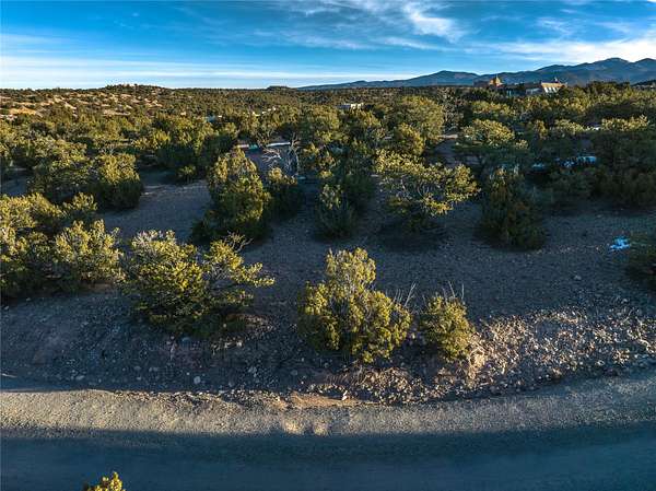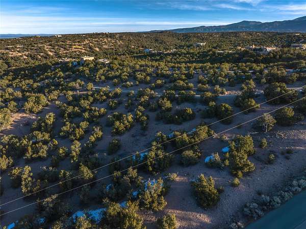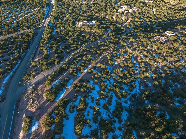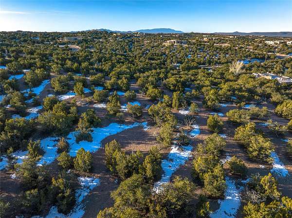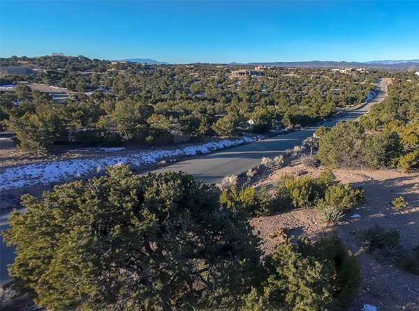 Luxury, Views & Privacy in the Coveted Tano Road Area - Set in one of Santa Fe's most desirable Northside locations, this exceptional 2.5-acre treed parcel offers a rare opportunity to create a refined rural retreat while remaining just minutes from the city's celebrated cuisine, art, and cultural life. Oriented west off Tano Road and shaped by a natural ridge, the property enjoys breathtaking panoramic views stretching for miles - encompassing the Sangre de Cristo, Sandia, Jemez, and even Colorado mountain ranges. Expansive skies, excellent solar exposure, and remarkable sunset views make this an extraordinary setting for a custom home designed to capture both light and landscape. A lightly traveled road follows the ridge line, thoughtfully dividing the land into two approximately 1.25-acre segments. This configuration provides an ideal primary building site on one side of the road, while ownership of the adjoining acreage across the road offers the added benefit of preserving open space, privacy, and long-term view corridors - a meaningful luxury in this sought-after area. Not part of a subdivision and free from HOA restrictions, the property allows architectural freedom and a true sense of independence. A shared well serves the property, with an established well agreement in place, providing a practical and dependable water source for future development. Legal access is established, and the setting reflects the essence of classic Santa Fe estate living - privacy, natural beauty, and wide-open land, without sacrificing convenience. Here, serenity and space coexist effortlessly with proximity to Santa Fe's world-class dining, galleries, music, and events. This is a rare offering for those seeking views, acreage, and elevated rural living, all within easy reach of the heart of Santa Fe.