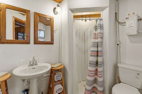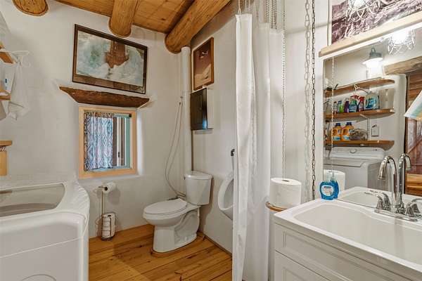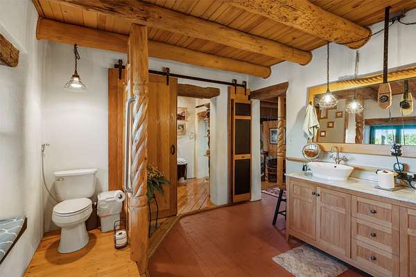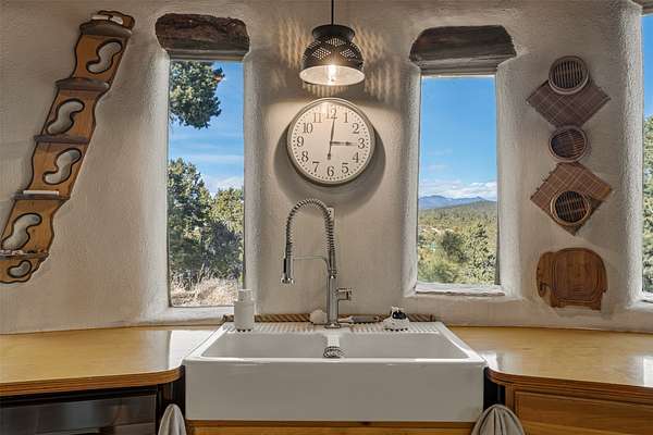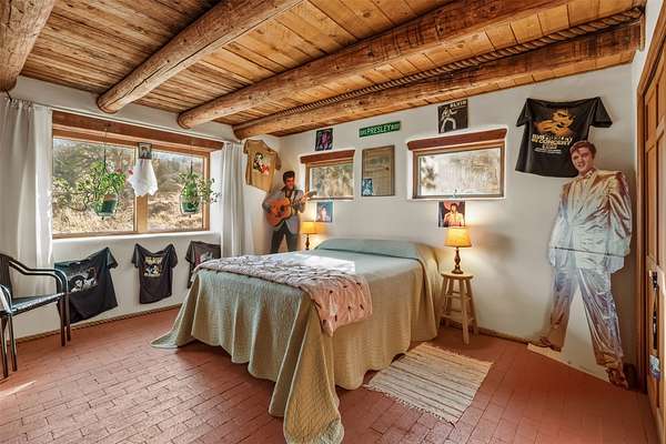 DO NOT USE GPS. Proceed East on Old Santa Fe Trail. Turn left (uphill) at the dirt road BEFORE Calle Marisol. Drive past two gated entrances (one on the right and another on the left. Continue driving uphill and veering right. You'll see the home on the right and the pitched roof studio on the left.