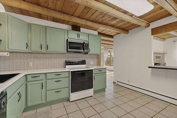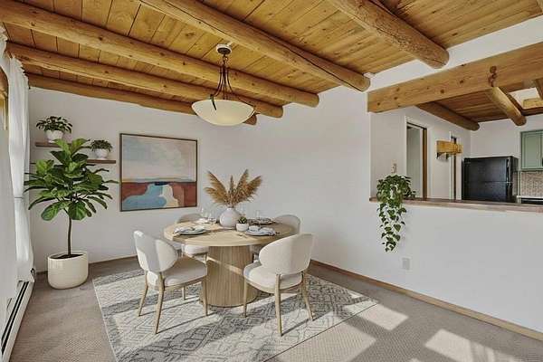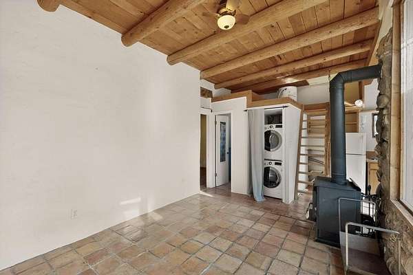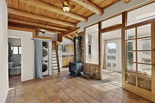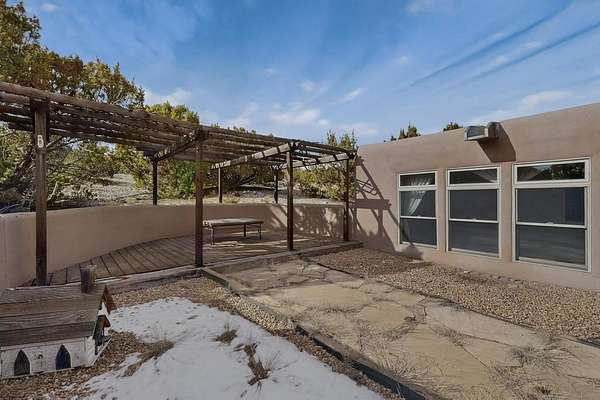 Have you ever wanted space to breathe and still be close to amenities? This zen home has that! Surrounded by native trees and plants, the mountains peak through when you're on the front deck. Enter the home to see large beams , lots of light, and SW MCM style. A passive solar dining room stays comfortable year around, and the fireplace & wood stove keep things cozy when the snow is falling. The updated kitchen has plenty of space with an eat-in bar top that looks outside, as well as a separate pantry and laundry room. Up a short flight of stairs, you'll find 4 bedrooms where the primary bedroom has a kiva fireplace to create a peaceful retreat. Outside, there are places to gather, and down the little path you find the hidden gem of a casita. Enter to find stone and brick and a luxury rustic vibe. The casita is full equipped with its own wood stove, a stackable washer/dryer, fridge, lots of light, and a separate bedroom/bathroom. Its private patio is a lovely South facing area perfect for hanging out or contemplation. In just a few minutes you're at the dog park or are on your way to the Plaza. If you're heading up to Los Alamos, the freeway is easy to access for a faster commute. Come take a deep breath and see this lovely home soon.