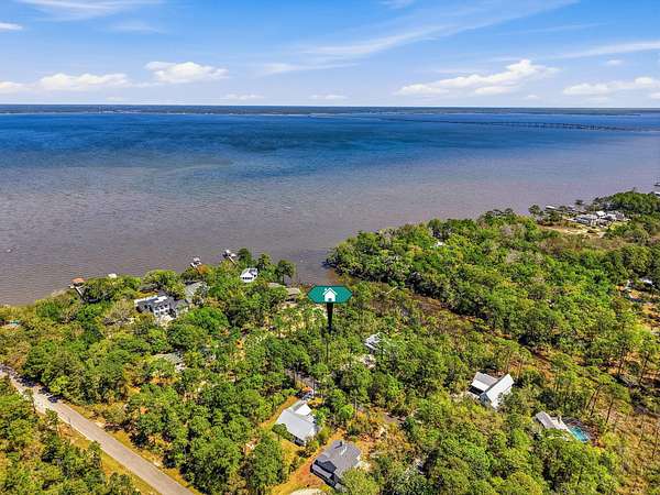 Hwy 98 to 393 North to Chat Holley road. Travel 1 1/2 miles on Chat Holley to Harstvedt Road. Turn left. Follow Harstvedt unitl it ends at the bay, may a right on Adair. The lot is on the left designated by a sign.