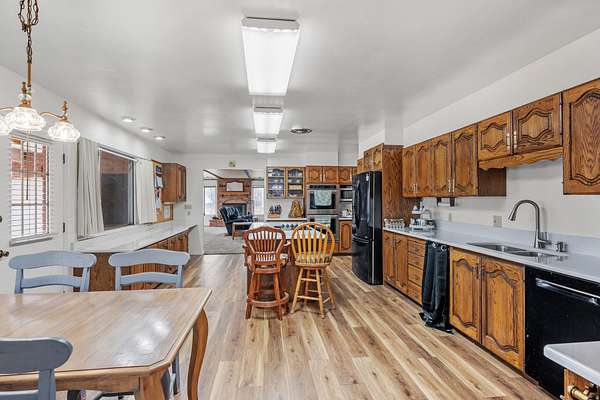 Rare 4.41-Acre Estate with Endless Possibilities Main-Level Living, Animal-Ready & Income Potential! Complete with a secure entry gate, well water, and 4 valuable water shares included. Animal lovers and hobby farmers rejoice this property is fully equipped for horses, livestock, and more, with multiple livestock areas and three big outbuildings. Expansive 7,184 sq ft rambler-style residence offering true one-level living and an oversized 4' front door that makes a striking first impression. An inviting entryway with wide 4' hallways flows effortlessly throughout. Fresh updates include brand-new carpet and stunning new countertops, ready for you to move right in. Cozy up to the fireplace on chilly evenings. With 7 bedrooms and 5 full bathrooms, this home is ideal for large or multi-generational families. Incredible income or guest potential with up to three possible ADUs (Accessory Dwelling Units) the sky truly is the limit! Outdoor features abound: RV parking, a separate pool house/garage, and plenty of room to spread out. Central air keeps you comfortable year-round, while the fully fenced perimeter and automated security gate provide peace of mind. Property Highlights: - 7,184 sq ft | 7 Beds | 5 Full Baths - 4.41 usable acres horses, livestock welcome - New carpet & new countertops - Main-level living with wide hallways & grand entry - Two chimneys one fireplace 1 outside grill | Central A/C - 3 outbuildings + pool house Gazebo - RV parking | Fully fenced with security gate - Well | 4 water shares included - Up to 3 possible ADUs for income or extended living Properties like this don't come along often. Bring your vision, your animals, and your dreams, endless opportunities await! All information is deemed reliable but not guaranteed. Buyer and Buyer's agent to verify all details, square footage, water shares, zoning, and ADU possibilities.*