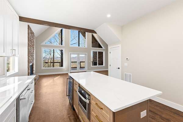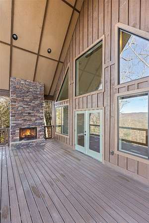 Perched at an impressive 3,600 feet above sea level, this new construction stunning mountain retreat invites you to live among the clouds in the breathtaking Blue Ridge Mountains of Western North Carolina. Located in the exclusive gated community of The Overlook at Sapphire, the home offers a lifestyle defined by privacy, comfort, and a deep connection to nature. Here, panoramic landscapes unfold at every turn, where native wildlife thrives, and the seasons paint Sapphire Valley and Cashiers Valley in ever-changing hues. Set on 1.93 acres and overlooking the storied Bald Rock Mountain-once known for historic mining and later used for Vietnam-era air training-this custom residence captures the spirit of mountain living through thoughtful architecture and refined finishes. Designed by renowned architect David Narramore of Narramore Associates in Greenville, SC, the Blakely floor plan offers approximately 2,650 heated square feet, including three bedrooms, two-and-a-half baths, and a versatile loft perfect for hobbies or overflow guest space. The main level brings everyday living to new heights with soaring ceilings, a beautifully appointed kitchen, and a great room anchored by a grand stone fireplace. A spacious primary suite with a walk-in closet ensures comfort and convenience, joined by a powder room and well-designed laundry space. Downstairs, guests can unwind in a second living area accompanied by two bedrooms, a full bath, and ample storage. Two levels of outdoor decks extend the living spaces into the fresh mountain air, each capturing seasonal views, the main level deck has a cozy fireplace for year-round enjoyment. Craftsmanship is showcased throughout the home with cultured stone accents, custom hardwood floors on the main level and loft, tile in baths and laundry, and quartz countertops paired with premium cabinetry. Every finish and feature has been selected to balance rustic mountain character with modern elegance. Whether gathering beside the flicker of a fire, exploring the surrounding peaks, or simply savoring the serenity, this is a home that elevates mountain living to something truly extraordinary. Welcome to The Overlook at Sapphire, where the beauty of nature and the comfort of luxury come together seamlessly.
