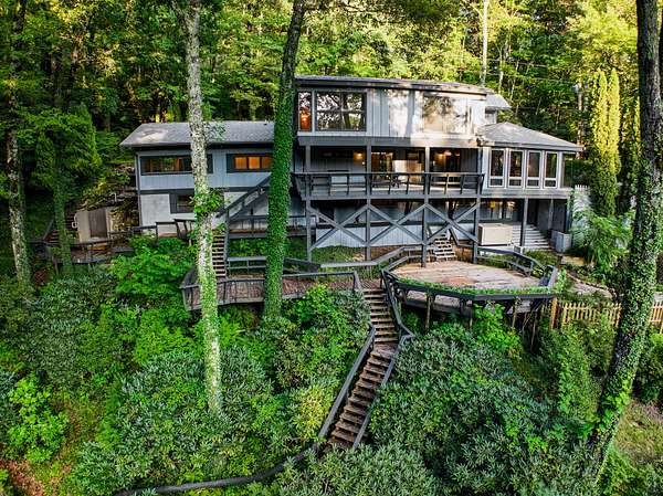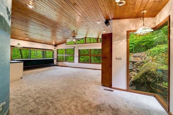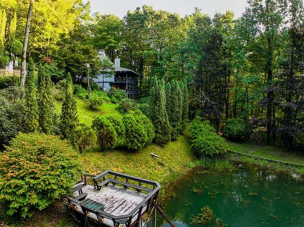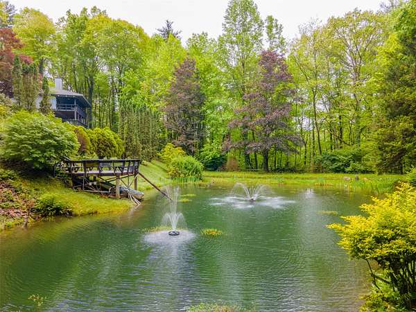 Take advantage of this rare opportunity to own two homes on a private pond. This is a fantastic option for a multi-family retreat or investment property. The larger home has two bedrooms, two full baths with 2 half baths set in a serene, mountain environment. Its floorplan and design offer potential buyers an exciting opportunity to customize and transform it into their dream home. As you step inside, you'll appreciate the abundant natural light that fills each space, creating a warm and inviting atmosphere. The house features a spacious interior that seamlessly leads to multiple levels of deck areas - both covered and open - perfect for enjoying the outdoors no matter the weather. There is a large finished lower level with living space, half bathroom and workshop. The smaller dwelling is a charming two bedroom, three bath home with a loft. The lower level has been finished off and there are spacious covered decks on both levels. The grounds are a true highlight, boasting lush, mature landscaping which surrounds a charming private pond equipped with lighting and two decorative fountains. This feature adds a peaceful and picturesque quality to the property, making it a tranquil retreat. The property sits comfortably with ample space for both living and entertaining. The lot itself is generously sized, providing ample room for potential expansions or enhancements according to your tastes and needs.