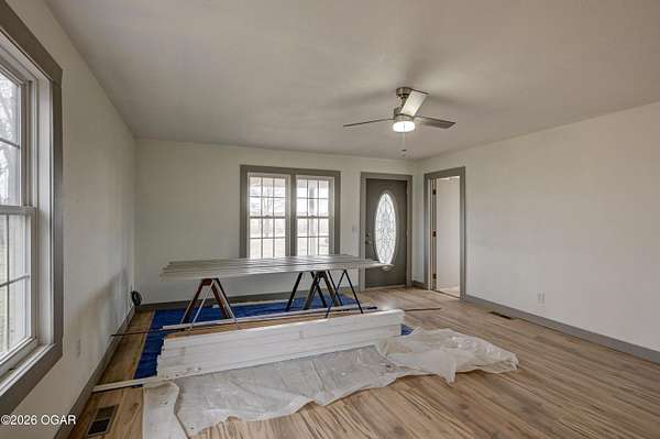Experience country living at its finest with this almost fully remodeled 4 bedroom, 3 bath farmhouse on 30 beautiful fenced acres. This 2069 square foot home offers the perfect blend of modern comfort and classic farmhouse charm. Step inside to an inviting layout filled with natural light, updated finishes, and flexible space for family, guests, or a home office. The living, dining, and kitchen areas flow together, creating a warm and functional gathering space. Outside, you will appreciate the 3-car garage for vehicles, tools, and toys, along with a versatile barn ready for livestock, equipment, or hobbies. The fully fenced land provides open pasture, ideal for grazing, a farm pond ideal for livestock, farm, or recreational use.