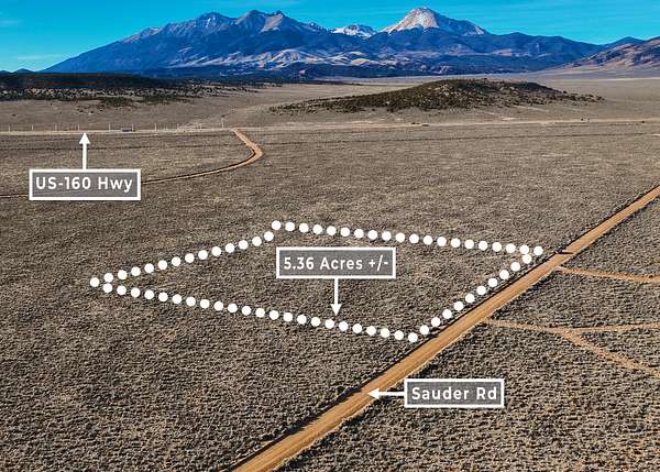The property is approximately 30 minutes from Fort Garland, 45 minutes from Alamosa, and around 2 hours from Great Sand Dunes National Park.