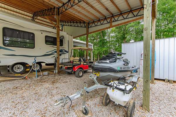 Weekend ready river lot in gated Big River Plantation. This turnkey water view property is your perfect getaway spot, just bring your clothes! Set up and ready for relaxation, the lot comes with a very nice camper and has an extra hookup for another camper, Making it ideal for hosting friends and family. For your convenience, the lot also comes with a John Deere 42" cut mower, two 10' kayaks, all the outdoor furniture, and a full-sized washer and dryer with an additional standing freezer. Everything you need is here for comfort and fun. Located in the secure, gated community of Big River Plantation, this lot offers a peaceful escape just steps from the water. Whether you're looking for a weekend retreat or a place to spend your summers, this is move in ready and packed with value! Jet Ski available to add to the deal as well.