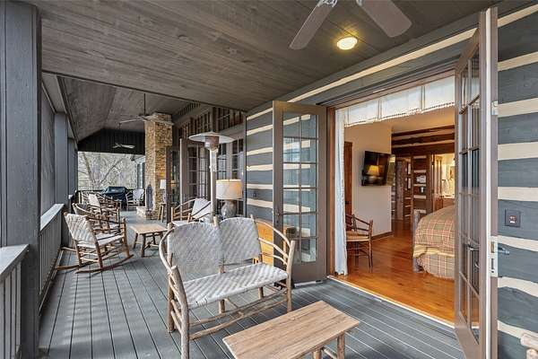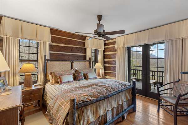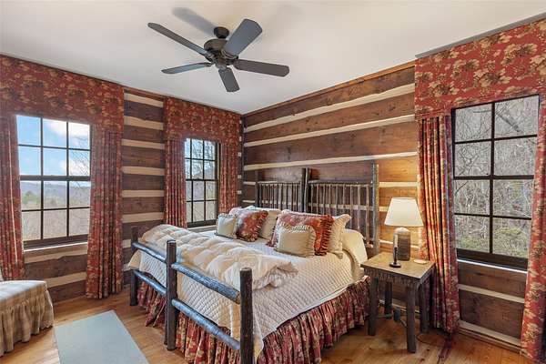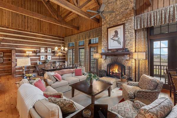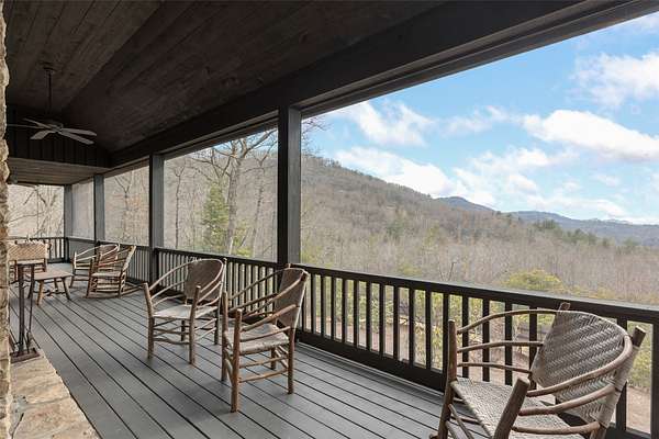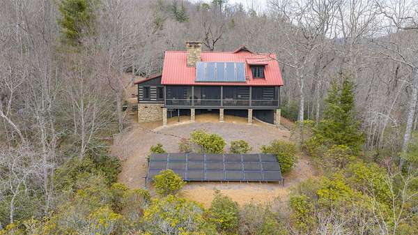 Scenic, Serene, and Sustainable! Tucked away in the Highland Gap community just minutes from Dillard Road, this extraordinary log estate offers panoramic mountain views, unmatched privacy, and purposeful design. Built in 2001 by renowned Lupoli Construction, the five-bedroom residence showcases authentic log construction with soaring vaulted ceilings, rich natural wood interiors, and a dramatic floor-to-ceiling stone fireplace that anchors the great room - a true gathering place for family and friends. Designed with sustainability in mind, the property features a fully integrated solar power system while still offering access to traditional electricity, creating an impressive balance of self-sufficiency and modern convenience. Beyond the main residence, the land tells its own story. Two additional homesites have development potential, creating the opportunity for a future family compound or multi-generational retreat. With 70+ acres preserved in a land trust, your views, privacy, and peace of mind remain protected for generations to come. Surrounded by North Carolina wilderness yet conveniently located near both Highlands and Clayton, you'll enjoy access to fine dining, boutique shopping, outdoor recreation, country clubs, and excellent schools - all within easy reach. A remarkable combination of privacy, scale, craftsmanship, and conservation - this is mountain living at its finest!