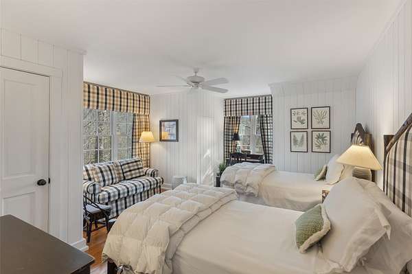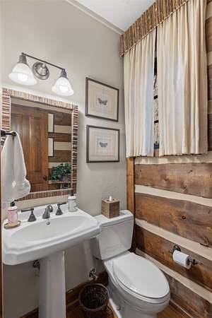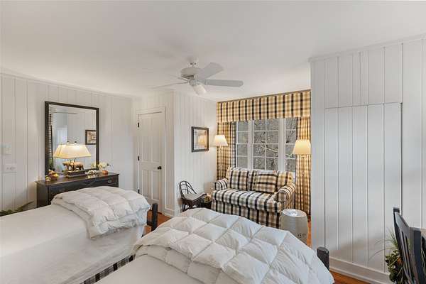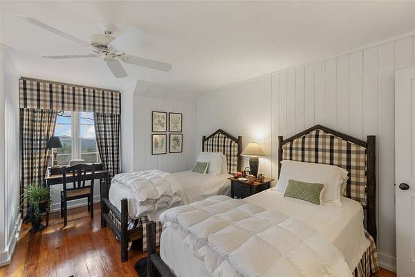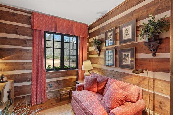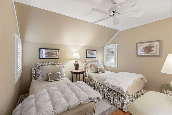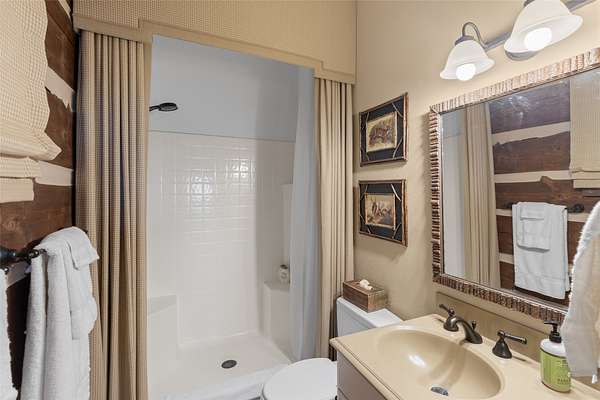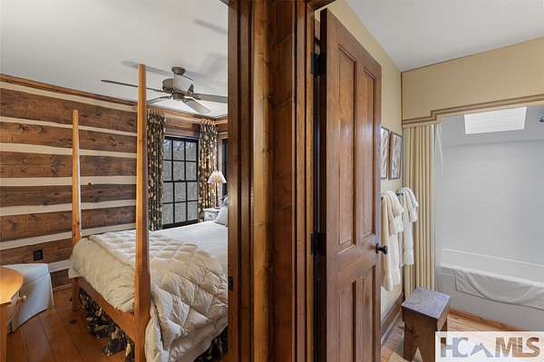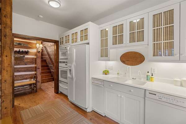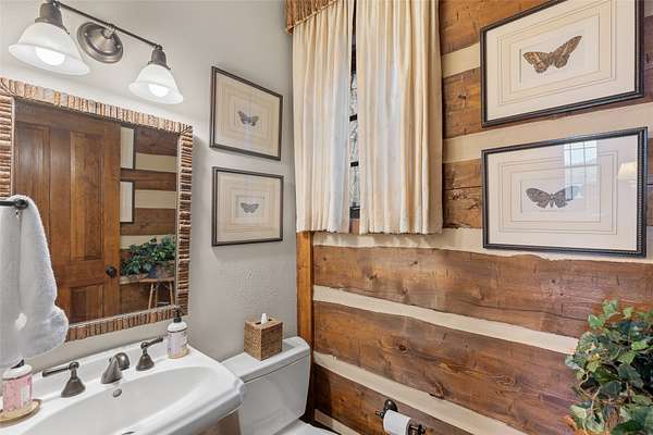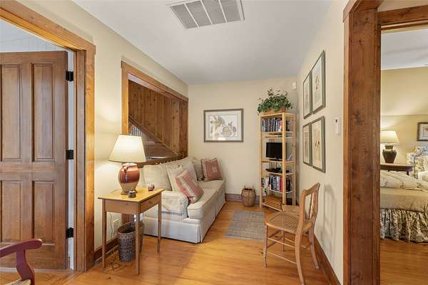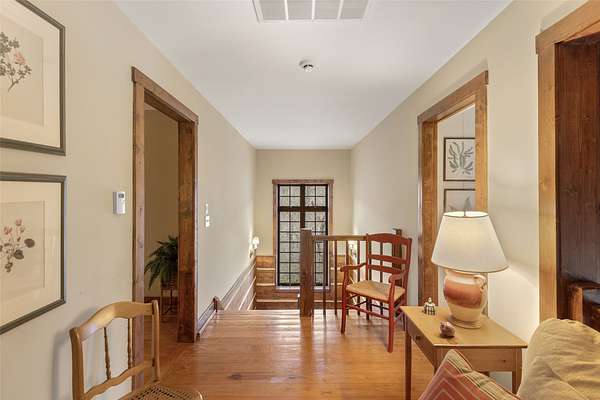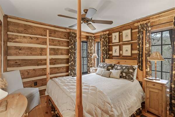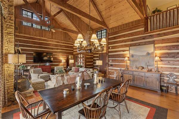 - Beamed Ceilings, Chandelier, Double Vanity, High Ceilings, Natural Woodwork, Primary Downstairs, Vaulted Ceilings